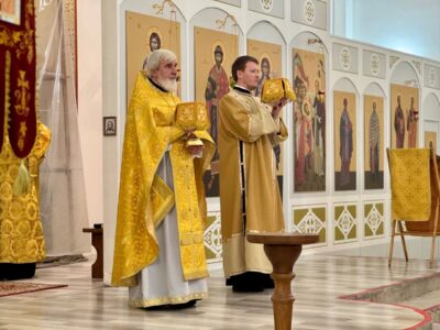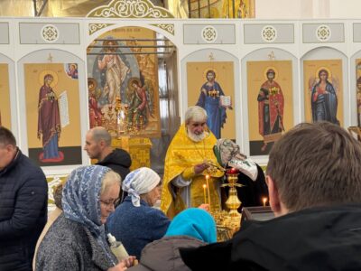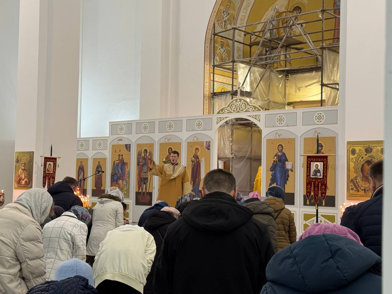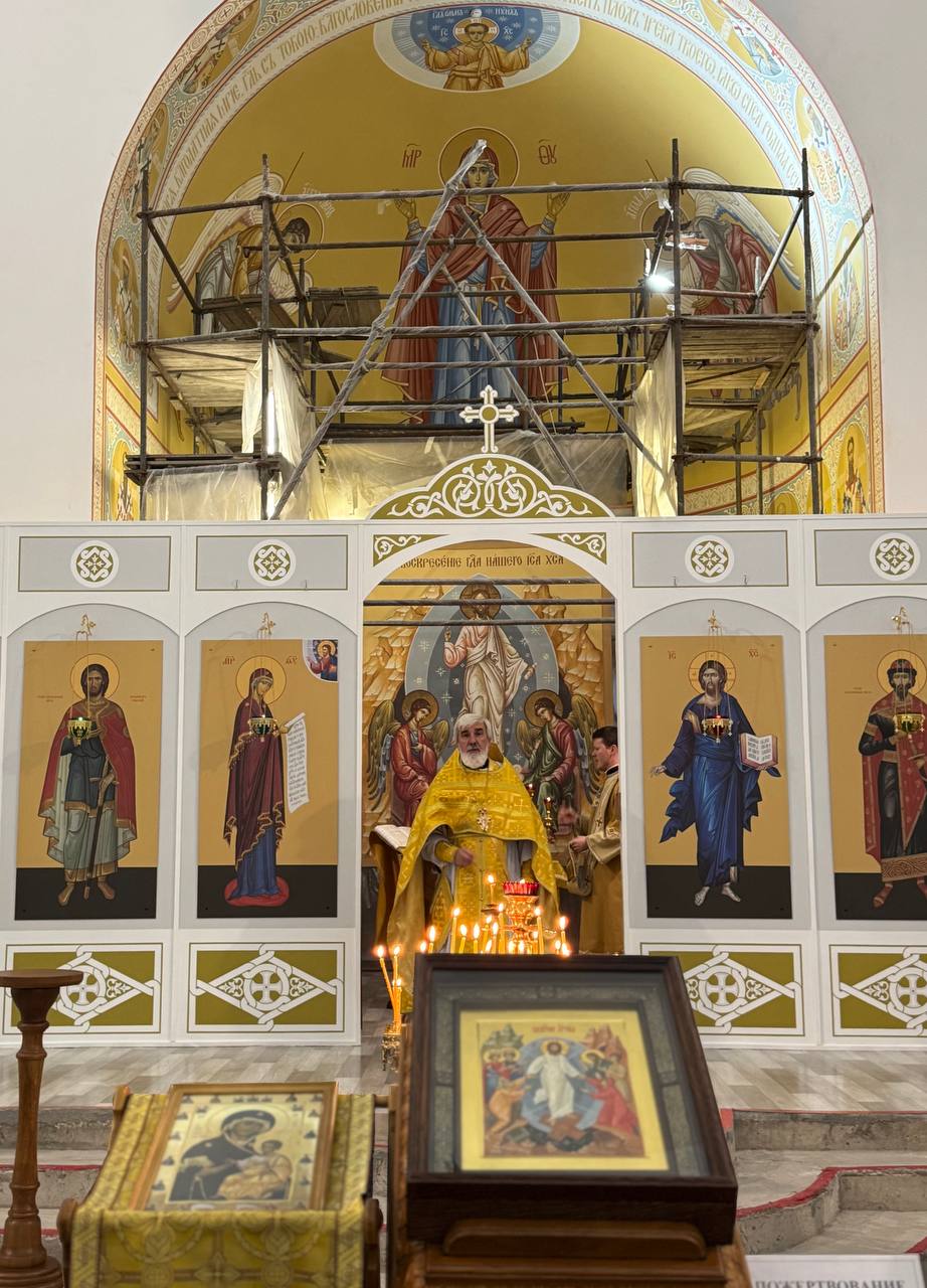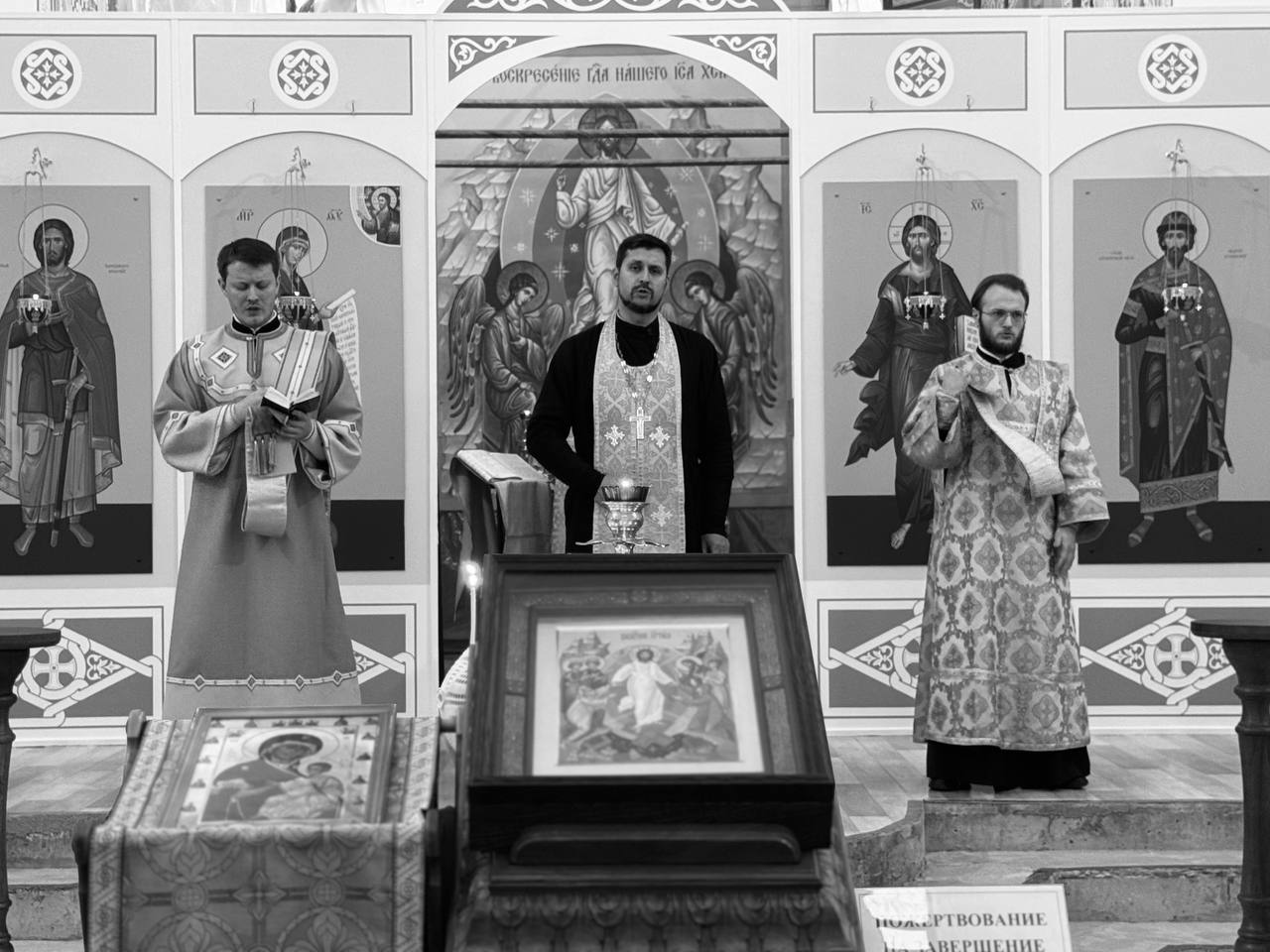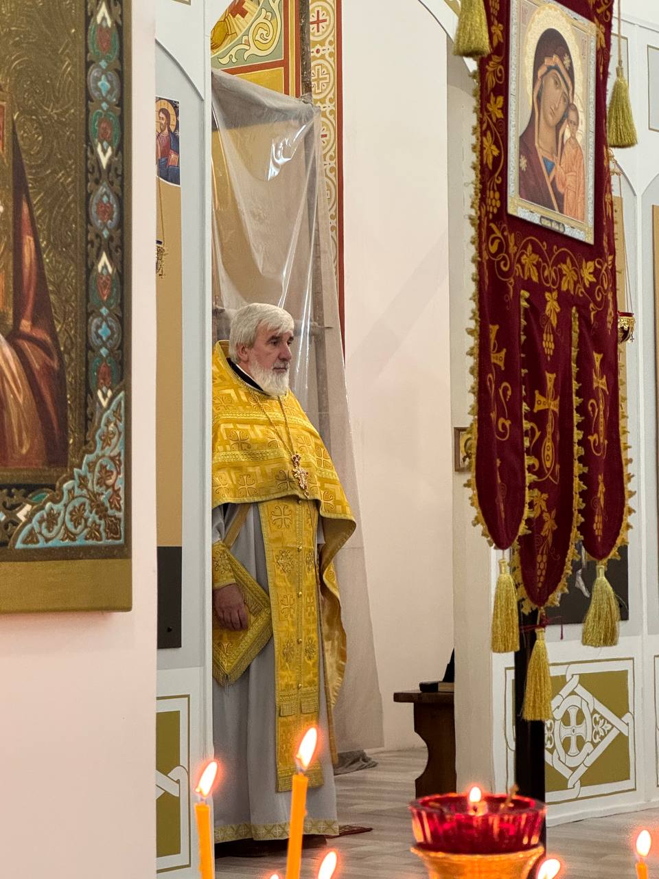 26 октября 2025 года, в Неделю 20-ю по Пятидесятнице, память святых отцов VII Вселенского Собора, Иверской иконы Божией Матери, Божественную литургию в храме Всемилостивого Спаса совершил настоятель храма протоиерей Михаил Подолей в сослужении клира.
