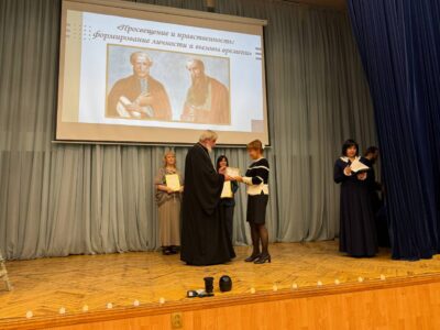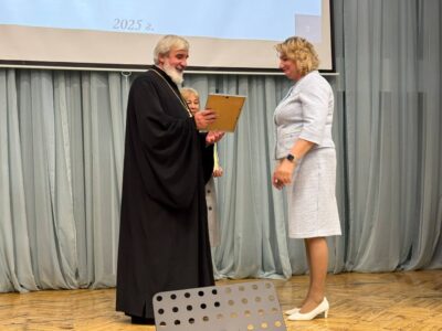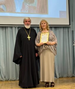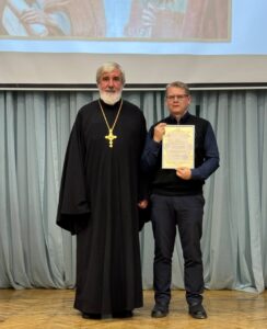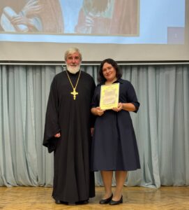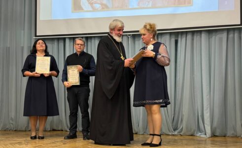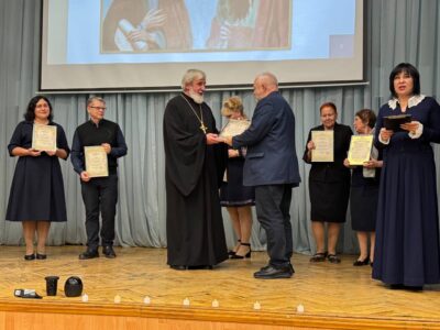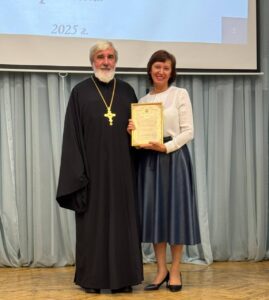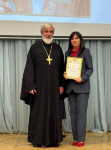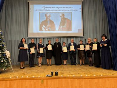 Директора ОУ и руководители работ районного конкурса исследовательских и творческих работ «Просвещение и нравственность: формирование личности и вызовы времени» были награждены грамотами, а также благодарностями за высший показатель в выборе предмета ОРКСЭ модуля Основы православной культуры были награждены директора Бражникова Наталья Алексеевна, школа №7, Калиберда Светлана Николаевна, школа №217, Козлова Елена Валентиновна, школа №219, Минкеева Ирина Николаевна, школа №285, Колоколова Наталья Петровна, школа №398, Куксенко Светлана Михайловна, школа №546, Фокина Ольга Владимировна, школа №678. В дар для школьной библиотеки отец Михаил передал пять экземпляров книги «Закон Божий».