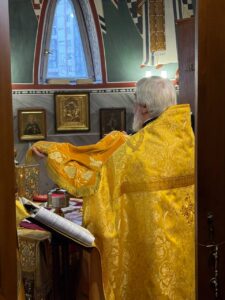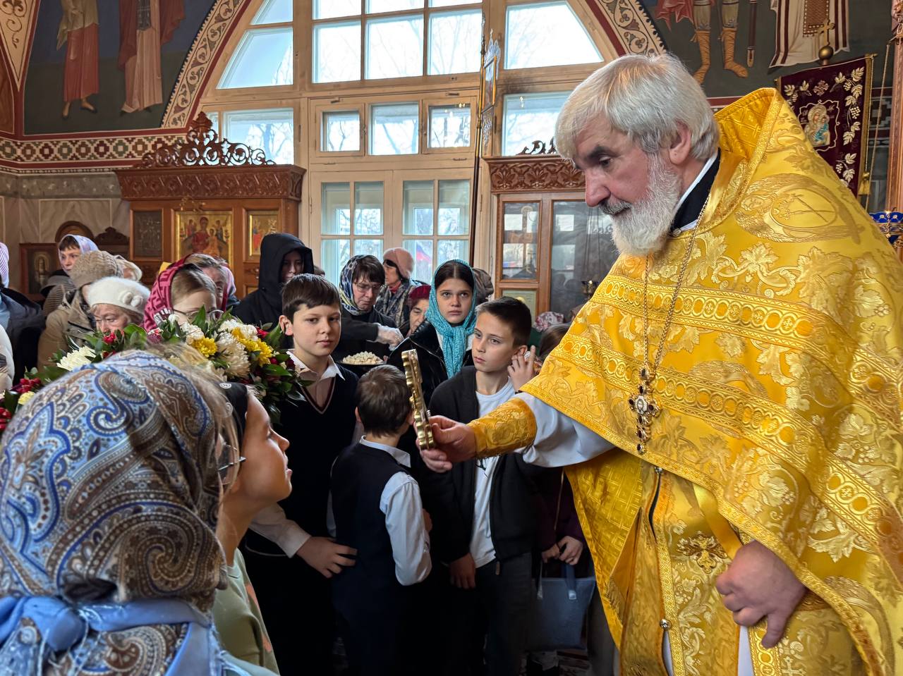23 ноября 2025 года, в Неделю 24-ю по Пятидесятнице, Божественную литургию в храме святого праведного Иоанна Кронштадтского на Кронштадтской площади совершил настоятель храма протоиерей Михаил Подолей в сослужении клира.