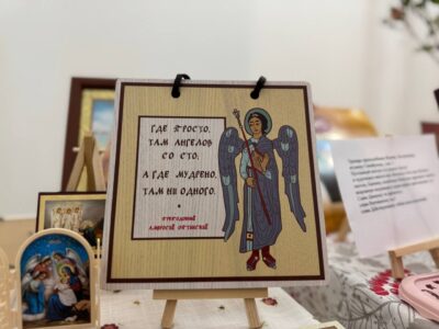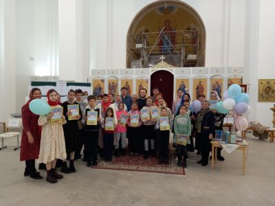 Детям была подарена тематическая Азбука церковнославянская «Ангельския силы», в которой собраны слова, словосочетания, знакомящие детей с духовным, невидимым миром, краткие молитвословия, песнопения и другие извлечения из богослужебных книг. Включены рисунки для раскрашивания цветными карандашами, изображающие ангелов. Для раскрашивания предназначены также буквицы, знакомящие детей с древними традициями оформления рукописных книг. Письменные упражнения предполагают копирование образцов букв кириллицы в графической сетке.