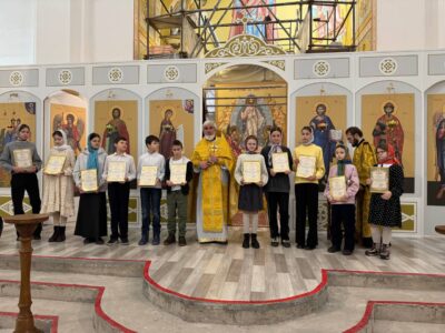 После Литургии отец Михаил вручил грамоты учащимся воскресной школы «София» по итогам интеллектуальной игры «Под защитой Ангелов», которая прошла в минувшее воскресенье. Он поблагодарил всех, кто потрудился, и пожелал, чтобы эти труды принесли духовную пользу.