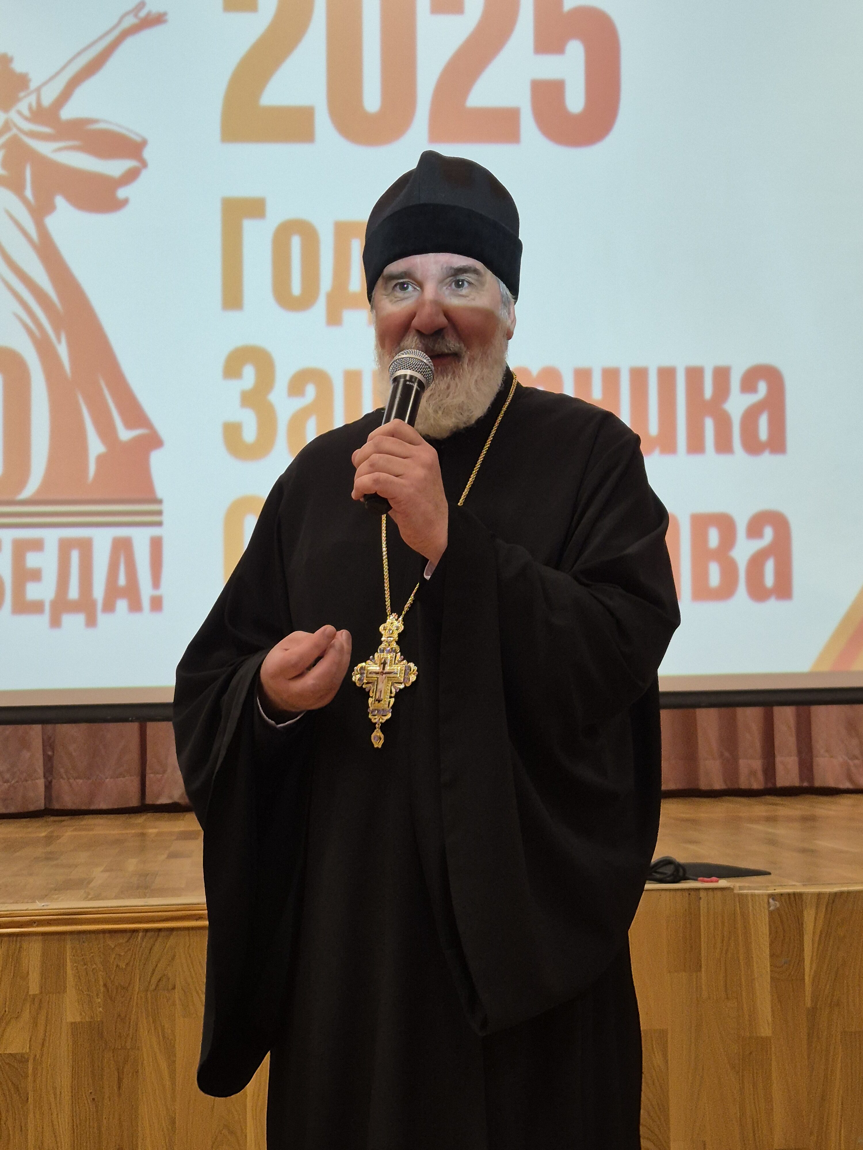 9 декабря 2025 года, по приглашению директора ГБОУ школа-интернат № 289 Красносельского района г. Санкт-Петербурга Николая Александровича Румянцева, благочинный Красносельского благочиннического округа протоиерей Михаил Подолей принял участие в Уроке Памяти, посвящённом завершению Года Героя Отечества «Навеки в памяти героев имена».