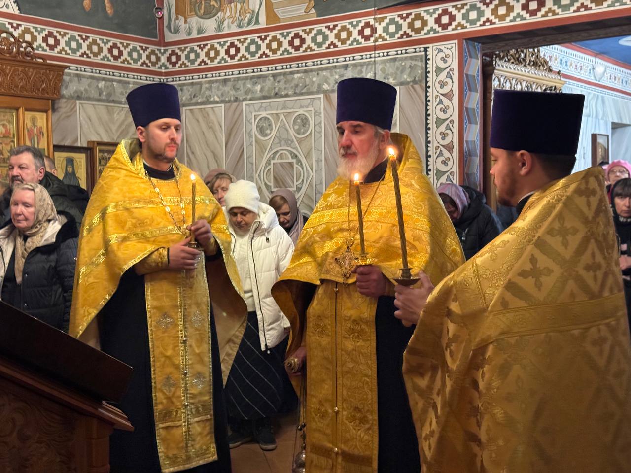 Вечером, накануне праздника, Всенощное бдение с чтением акафиста свт. Николаю Чудотворцу в храме святого праведного Иоанна Кронштадтского совершил также настоятель храма протоиерей Михаил Подолей в сослужении клира.