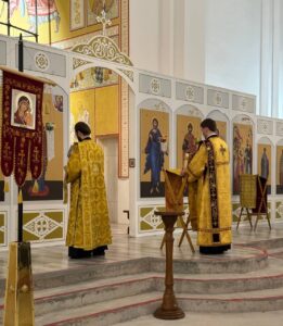 21 декабря 2025 года, в Неделю 28-ю по Пятидесятнице, Божественную литургию в храме Всемилостивого Спаса совершил настоятель храма протоиерей Михаил Подолей в сослужении иерея Павла Власюка и диаконов Эмануила Кричфалуший и Николая Борисова.