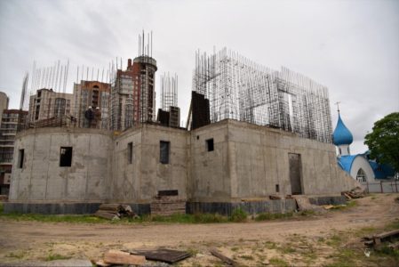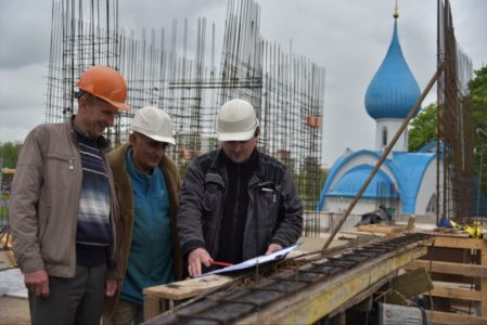 До конца месяца строители планируют залить стены и колонны второго этажа, собрать опалубку и каркас внутренней лестницы правой части храма.