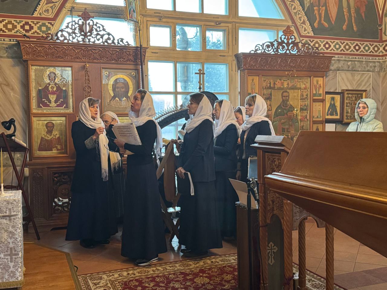 Пел любительский хор прихода храма святого праведного Иоанна Кронштадтского под управлением регента Марины Паниной.