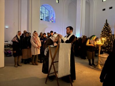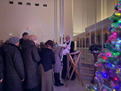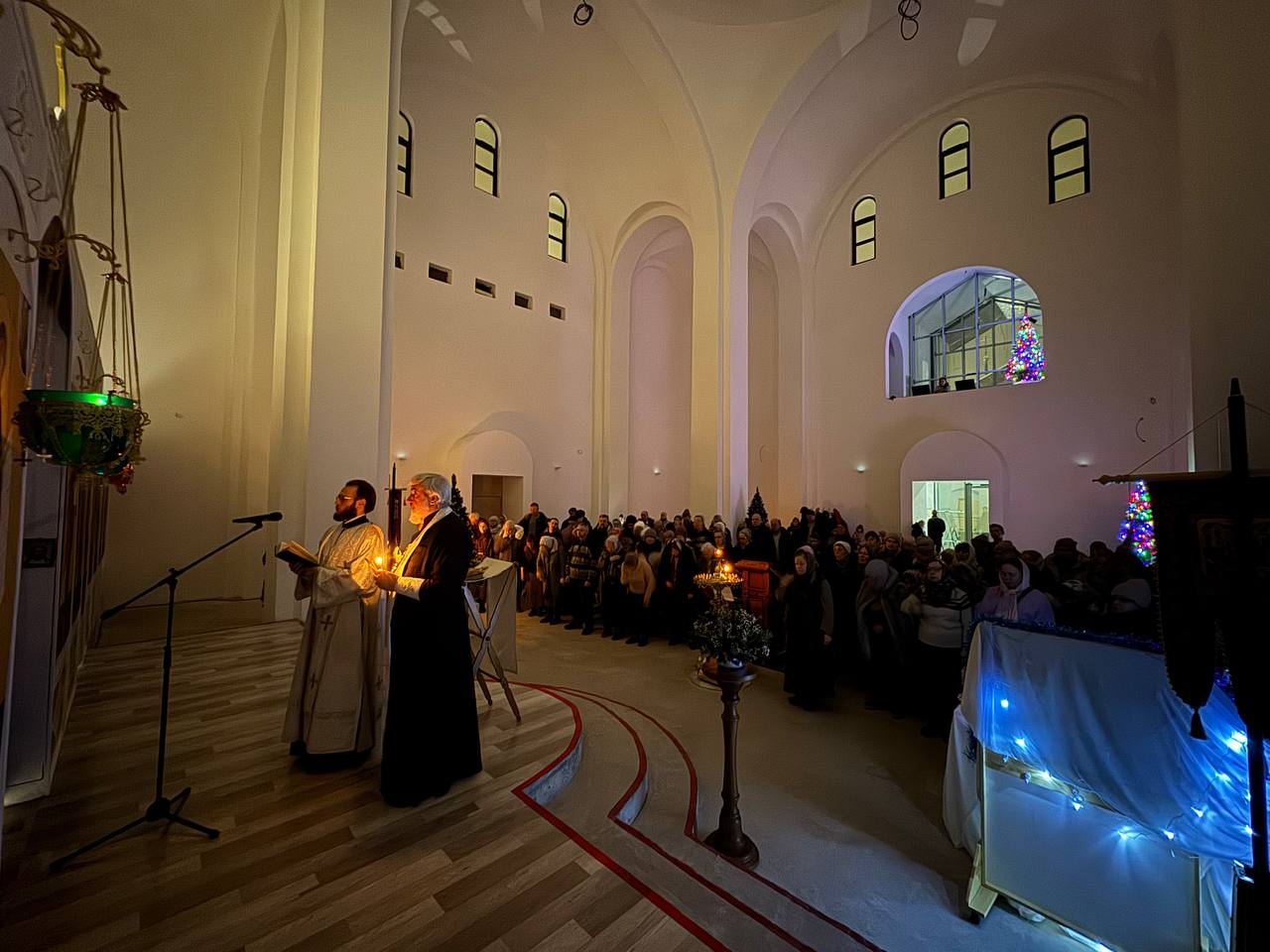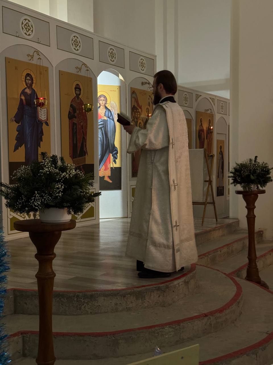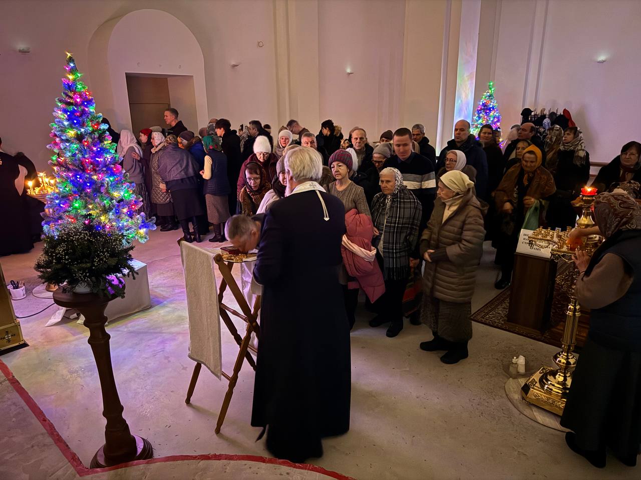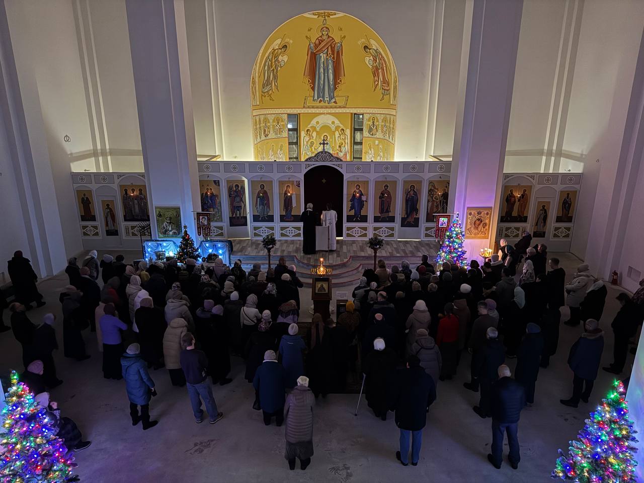 Вечером 5 января 2026 года, в преддверии праздника Рождества Христова, Уставную службу в храме Всемилостивого Спаса совершил настоятель храма протоиерей Михаил Подолей в сослужении клира.
