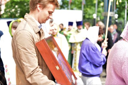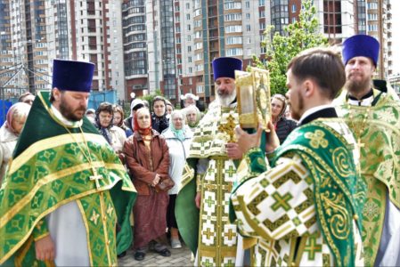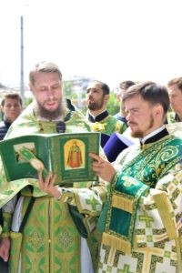 После отпуста литургии праздник плавно перешел в молебное пение с крестным ходом, посвященное небесному покровителю храма. Священник Вадим Кавалерчик отметил, что крестный ход, который сопровождался прекрасной солнечной погодой, напоминал радостные пасхальные молитвенные шествия вокруг храма. Такая ассоциация была настолько ощутимой, что при окроплении народа святой водой из груди священника вырывалось пасхальное приветствие «Христос Воскресе».
