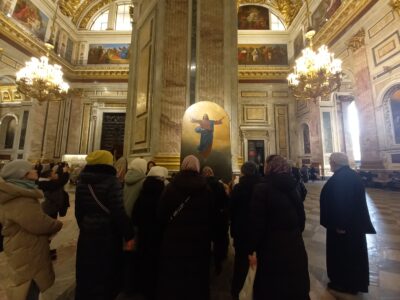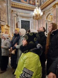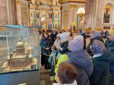 31 января 2026 года, в субботу 34-й седмицы по Пятидесятнице, воспитанники воскресной школы «София» вместе с настоятелем прихода протоиереем Михаилом Подолеем, учителями и родителями посетили Исаакиевский собор. По благословению ключаря Исаакиевского собора протоиерея Романа Ковальского группу сопровождал клирик собора священник Дионисий Прозоров. Была проведена экскурсия в соборе, а также на нижнем этаже храма, где располагается экспозиция «Чтобы помнили…», посвященная музейным сотрудникам, сумевшим в суровое военное время сберечь уникальные экспонаты, которые не успели эвакуировать в тыл из города и его пригородов.