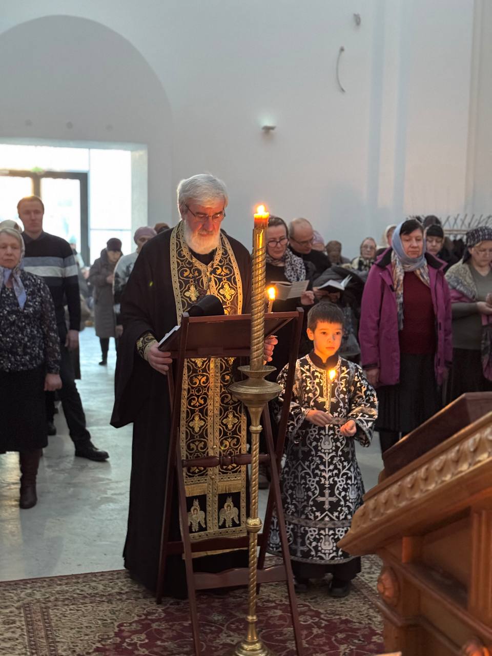 23 февраля 2026 года, в понедельник 1-й седмицы Великого поста было совершено великое повечерие с чтением Великого покаянного канона преподобного Андрея Критского. Богослужение возглавил настоятель храма протоиерей Михаил Подолей.