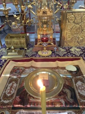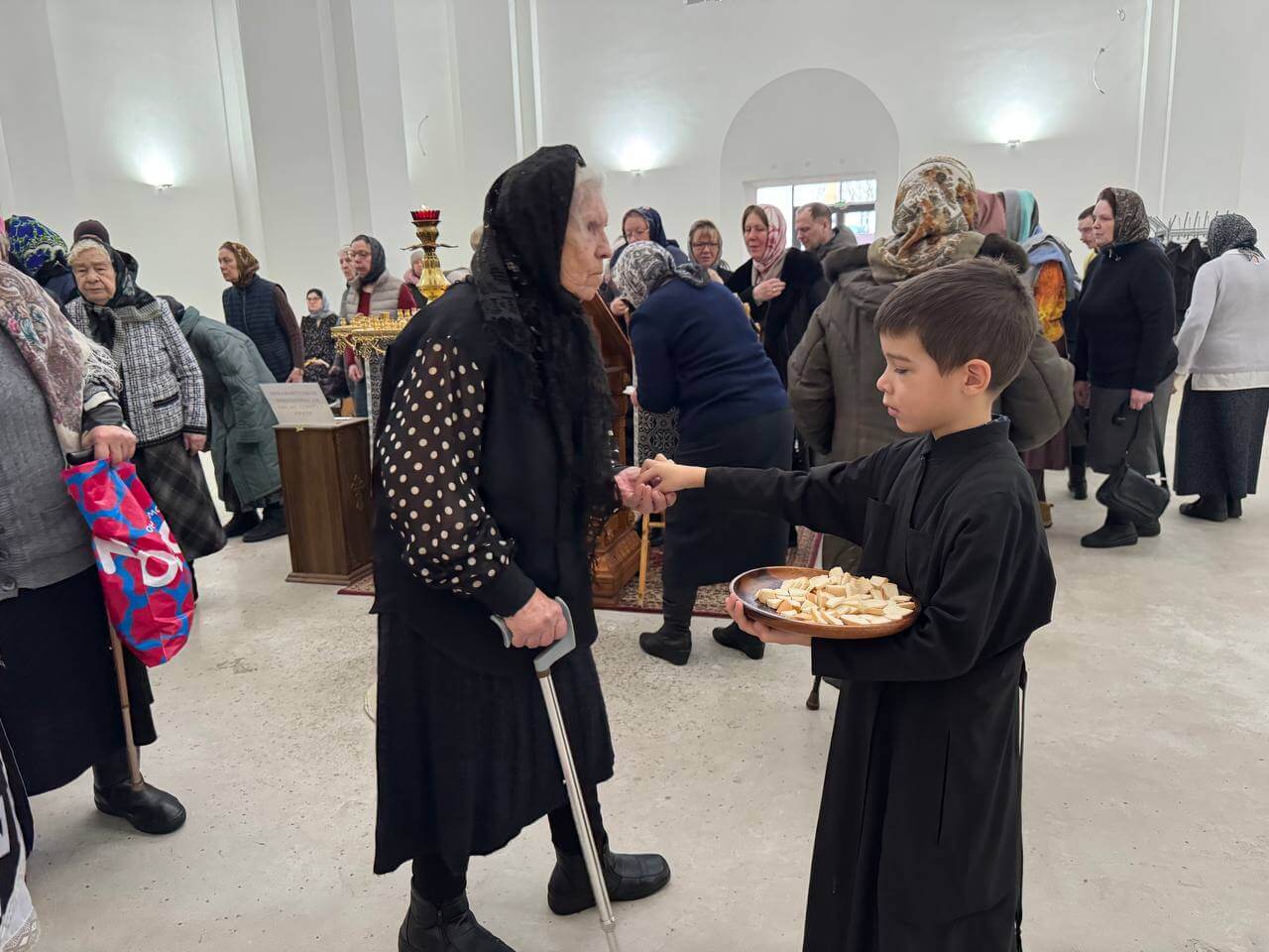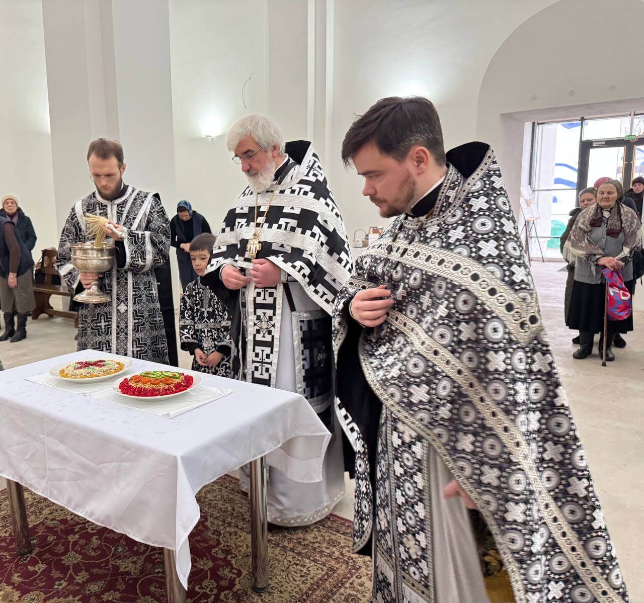 После богослужения был совершен молебный канон великомученику Феодору Тирону и благословение колива.
