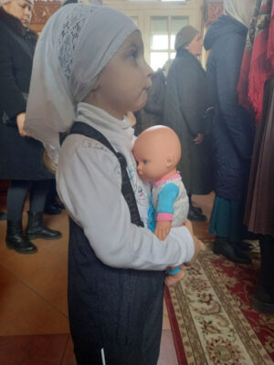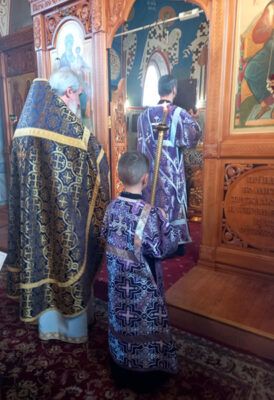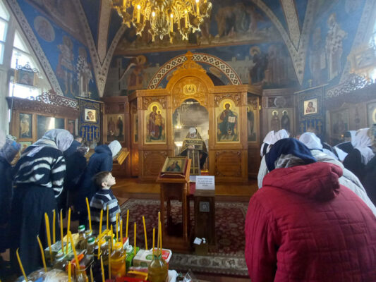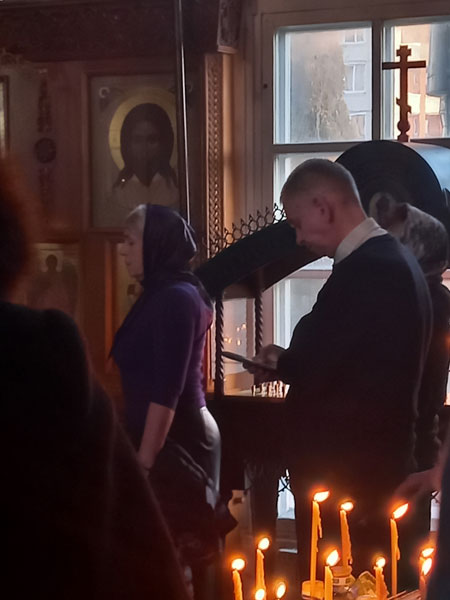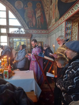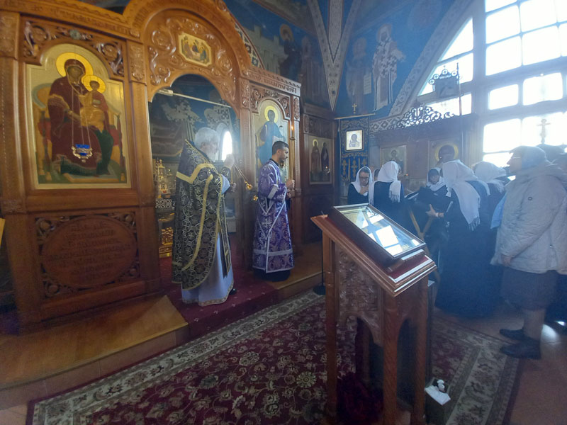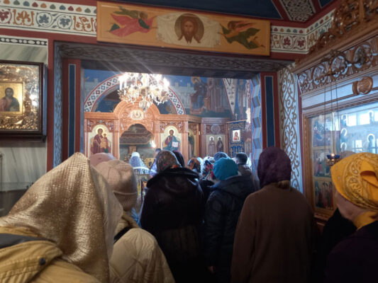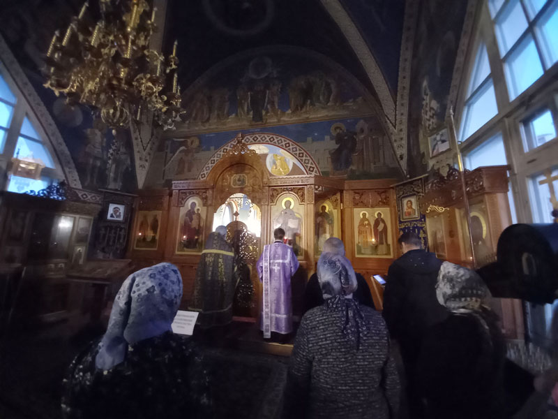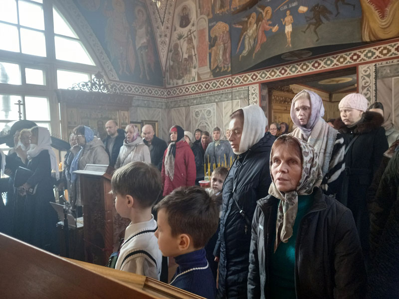 По окончании богослужения настоятель храма протоиерей Михаил Подолей обратился к прихожанам с проповедью, а также поздравил регента любительского хора Марину Панину с днем тезоименитства, отметив её многолетнее послушание регента.