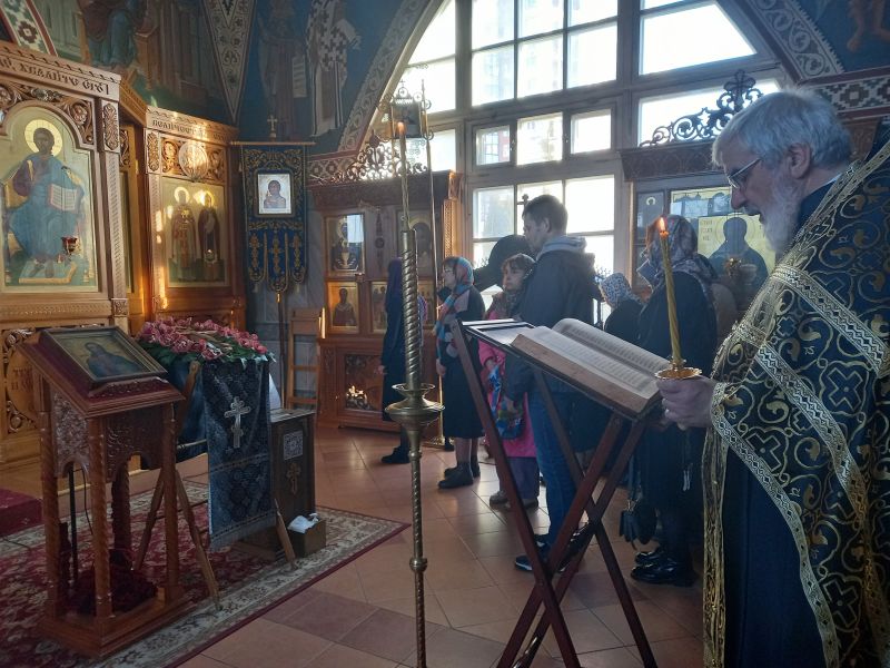 Вечером 15 марта 2026 года, в Неделю 3-ю Великого Поста, Крестопоклонную, в храме святого праведного Иоанна Кронштадтского настоятель храма протоиерей Михаил Подолей совершил вечернее богослужение с Чином Пассии и Акафистом Божественным Страстям Христовым.
