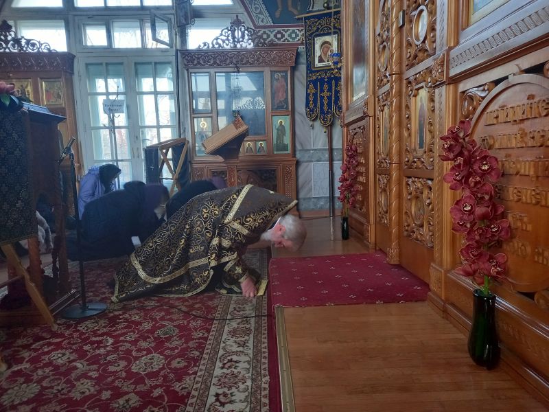 При пении стихиры «Тебе, одеющагося светом, яко ризою» Святое Евангелие было изнесено на центр храма и положено на аналое перед крестом. Настоятель храма прочел акафист Страстям Христовым.