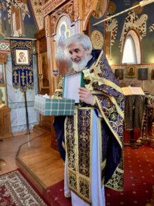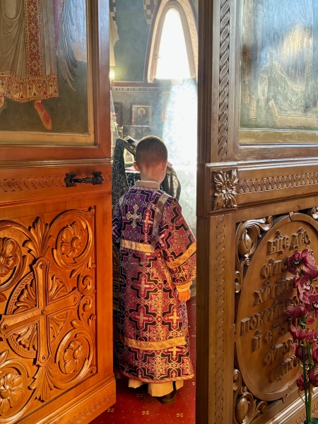 После Литургии отец Михаил тепло поздравил самого младшего постоянного алтарника нашего храма отрока Василия с семилетием и обратился к прихожанам с напутственным словом.
