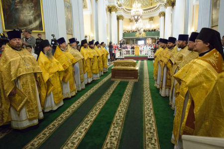 27-28 июля настоятель нашего храма, благочинный Красносельского округа протоиерей Михаил Подолей участвовал во встрече Святейшего Патриарха Московского и всея Руси Кирилла и сослужил Его Святейшеству в Свято-Троицком соборе Александро-Невской Лавры, а также принимал участие в проводах мощей святителя и чудотворца Николая в аэропорту Пулково.