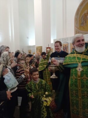 Духовенство и прихожане поздравили друг друга с праздником Входа Господня в Иерусалим.