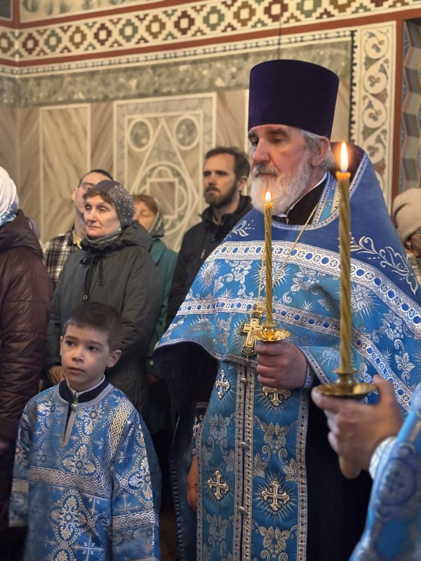 Накануне вечером всенощное бдение Благовещения Пресвятой Богородицы также совершил протоиерей Михаил Подолей в сослужении клира в храме святого праведного Иоанна Кронштадтского.