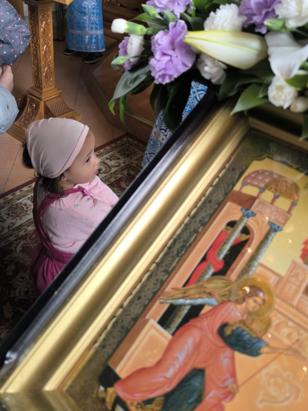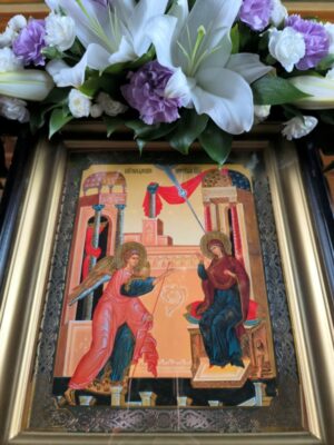 В своей проповеди отец Михаил обратил внимание прихожан на особенность этого года — праздник Благовещения приходится на Страстную седмицу и таким образом за несколько дней мы прикасаемся ко всей истории искупления рода человеческого — от Благовещения Пресвятой Богородицы до Воскресения нашего Господа Иисуса Христа.