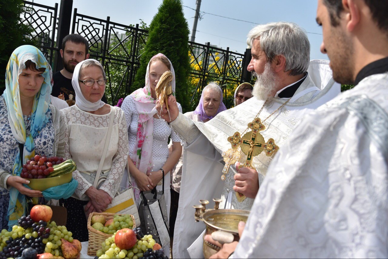 По традиции в храмах после Божественной литургии освящаются плоды. Настоятель храма протоиерей Михаил Подолей в своей проповеди к прихожанам сказал, что хотя сейчас мы освящаем не то, что вырастили сами на грядках и нивах и принесли в благословение первые плоды, молитва, которая совершается на освящение плодов, имеет и для нас важное значение, так как мы принимаем и вкушаем все эти плоды как Божественный Дар.