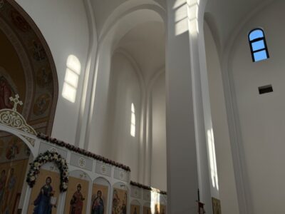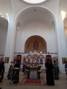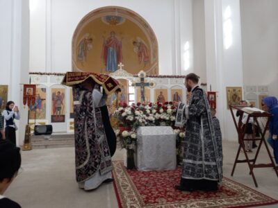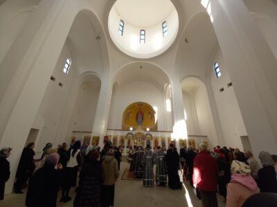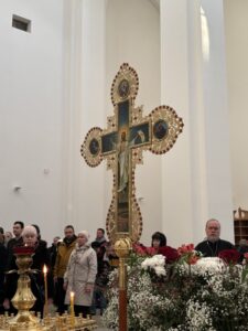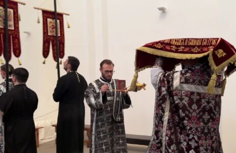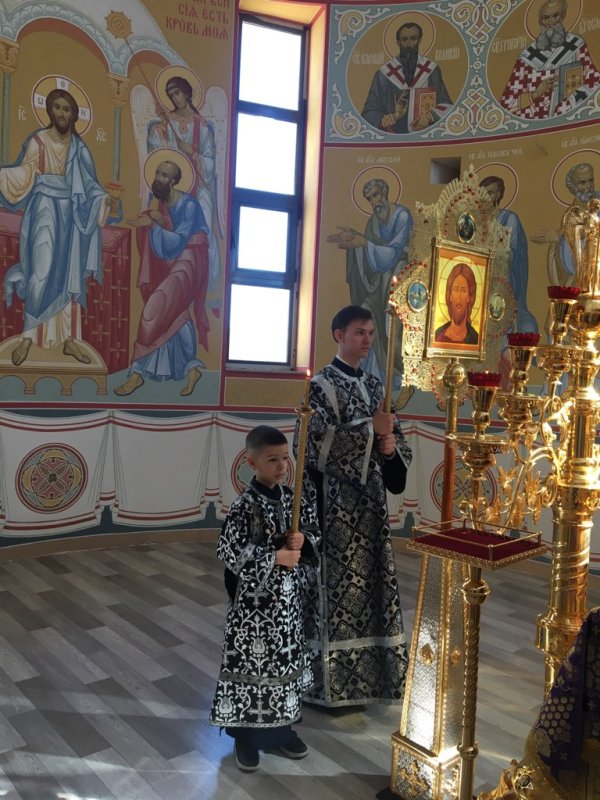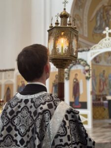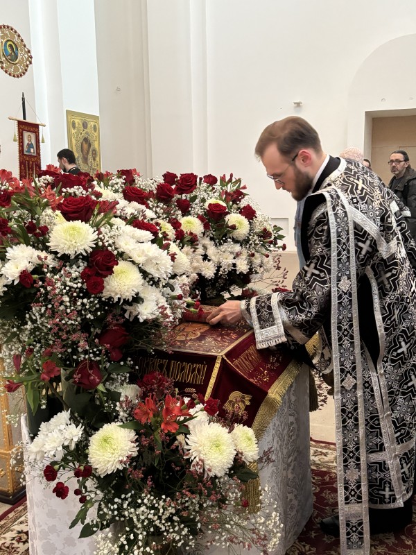 Вечером 10 апреля 2026 г. в храме Всемилостивого Спаса протоиерей Михаил Подолей в сослужении клира отслужил утреню Великой Субботы с чином погребения Святой Плащаницы, символизирующий погребение Тела нашего Господа Иисуса Христа.