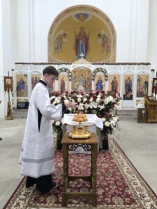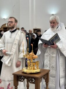 До начала Божественной Литургии были зачитаны Паремии — пророческие отрывки Священного Писания Ветхого Завета, повествующие о будущем пришествии в мир Спасителя.