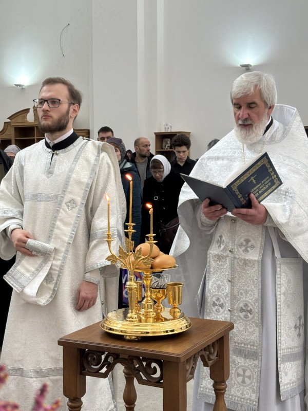 11 апреля 2026 г. Божественную Литургию Великой Субботы в храме Всемилостивого Спаса совершил настоятель храма протоиерей Михаил Подолей в сослужении клира.