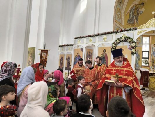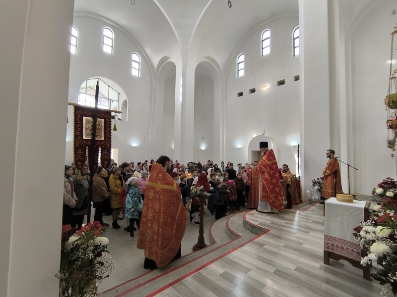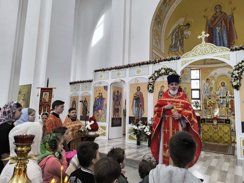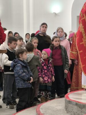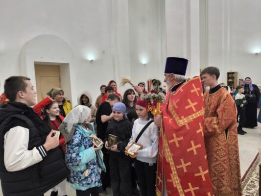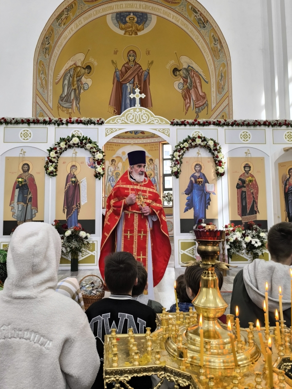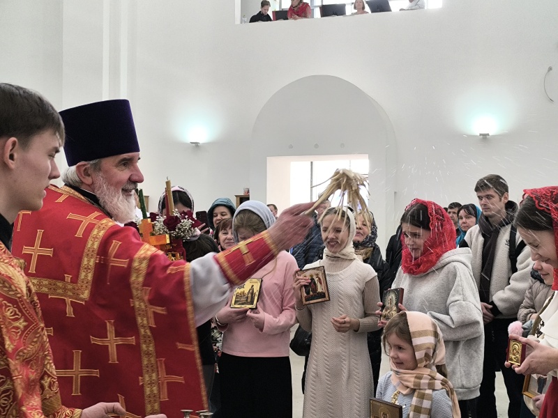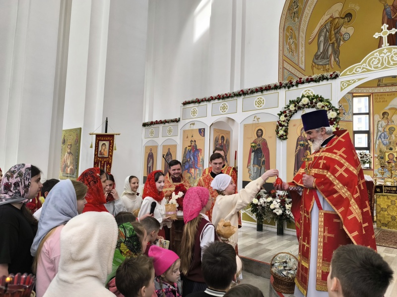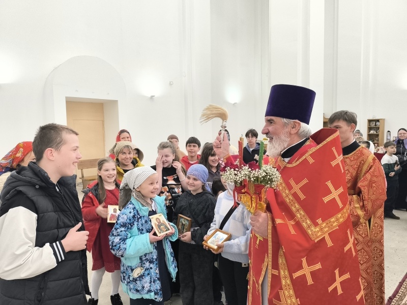 За богослужением молились воспитанники Воскресной школы «София» при храме святого праведного Иоанна Кронштадтского, подопечные «Центра содействия семейному воспитанию» №6, родители и дети из близлежащих домов.