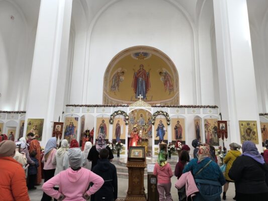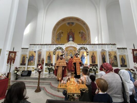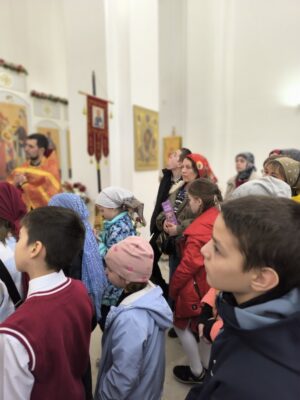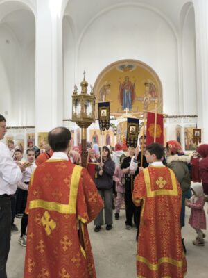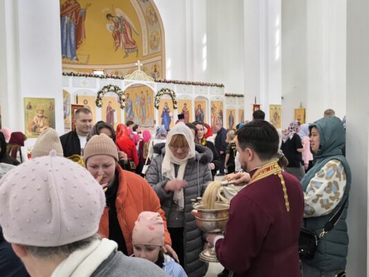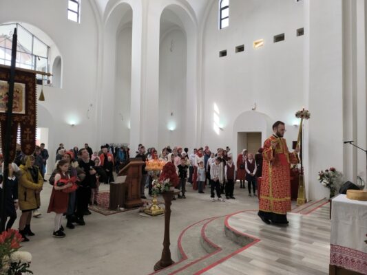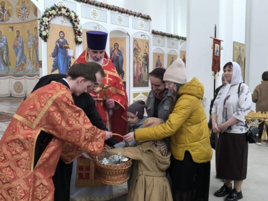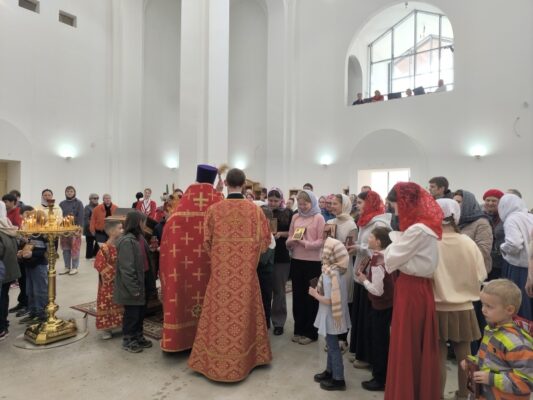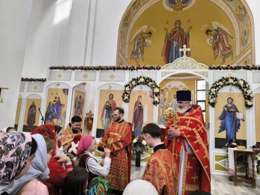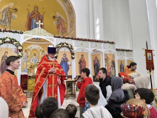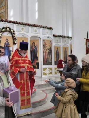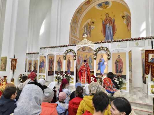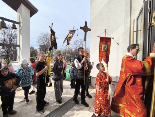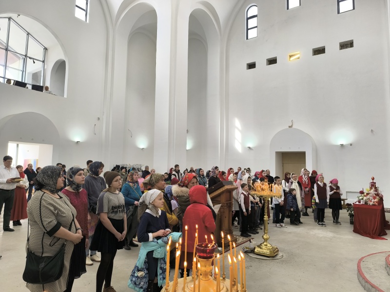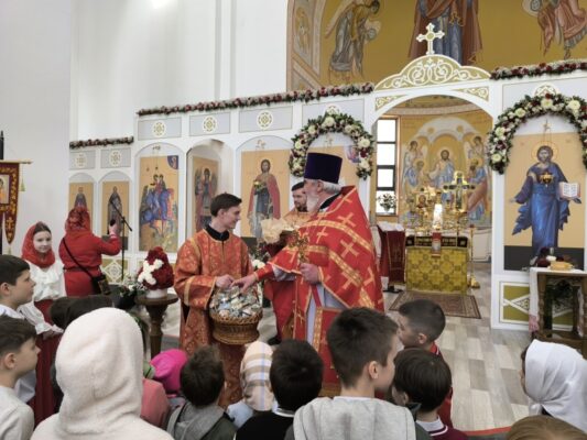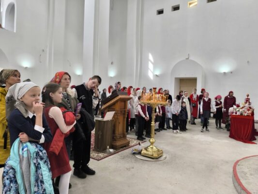 За богослужением молились воспитанники Воскресной школы «София» при храме святого праведного Иоанна Кронштадтского, подопечные «Центра содействия семейному воспитанию» №6, родители и дети из близлежащих домов.