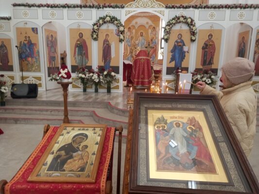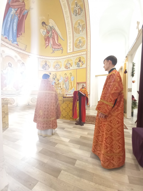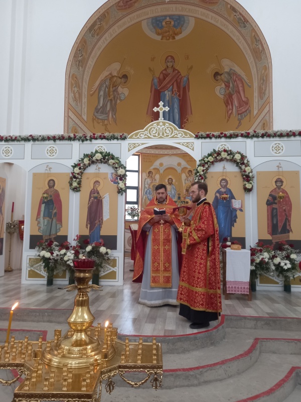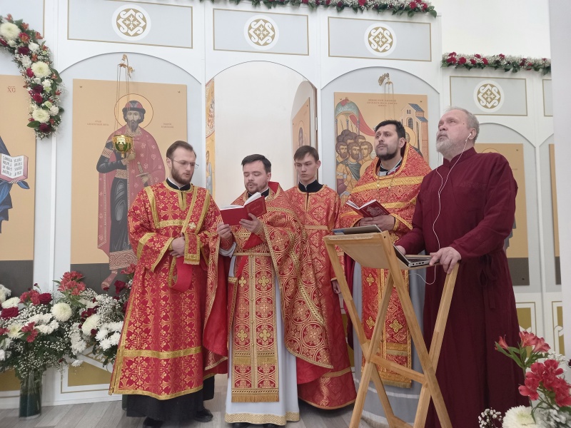 14 апреля 2026г., во вторник Светлой седмицы — сплошной, — Иверской иконы Божией Матери, Божественную Литургию Пасхальным чином в храме Всемилостивого Спаса совершил настоятель храма протоиерей Михаил Подолей в сослужении клира.