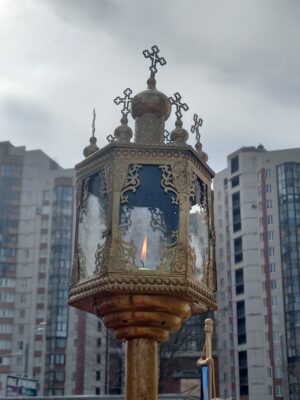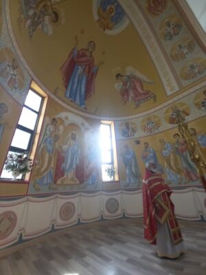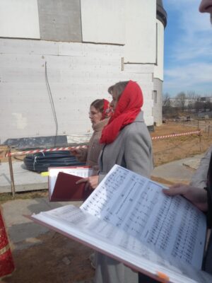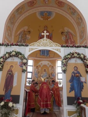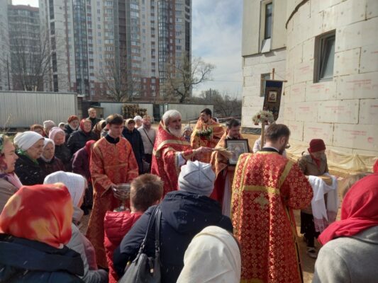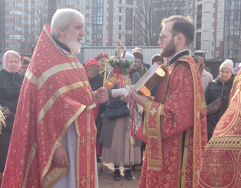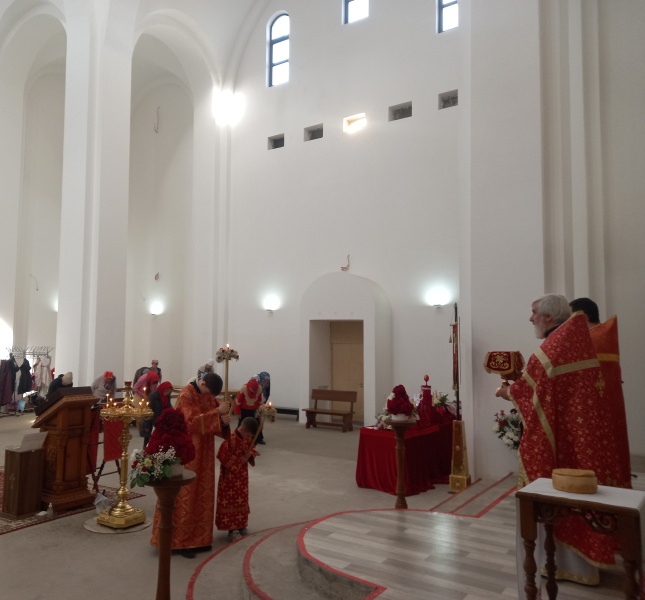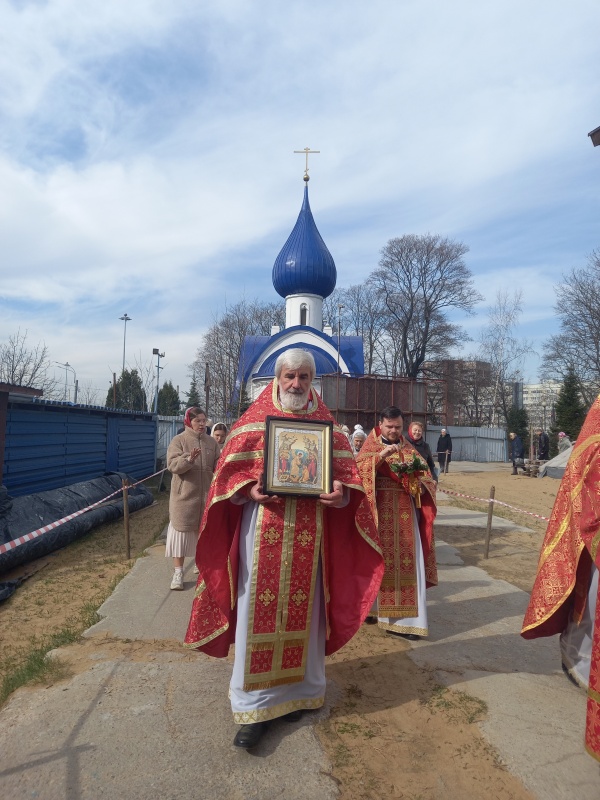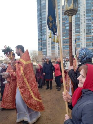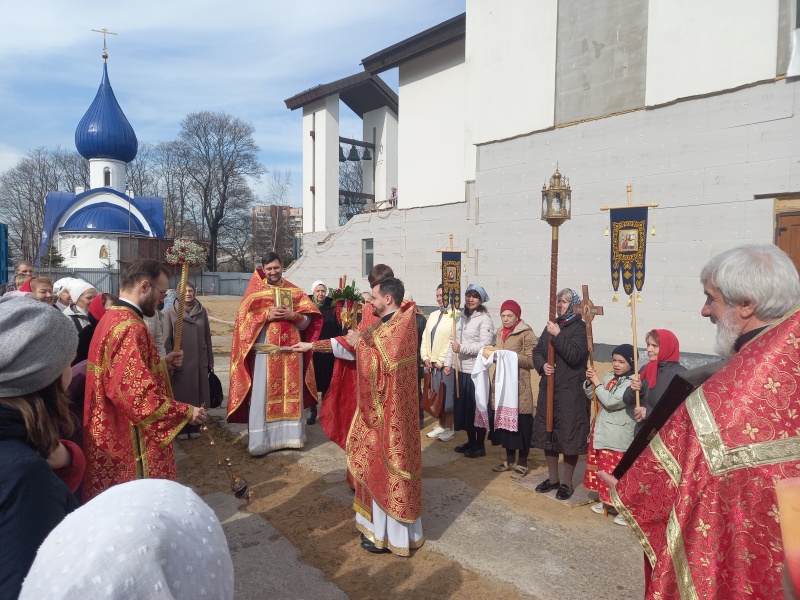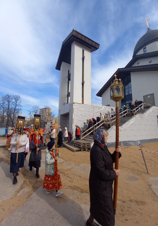 После Божественной Литургии священнослужители и прихожане совершили Крестный ход вокруг храма.