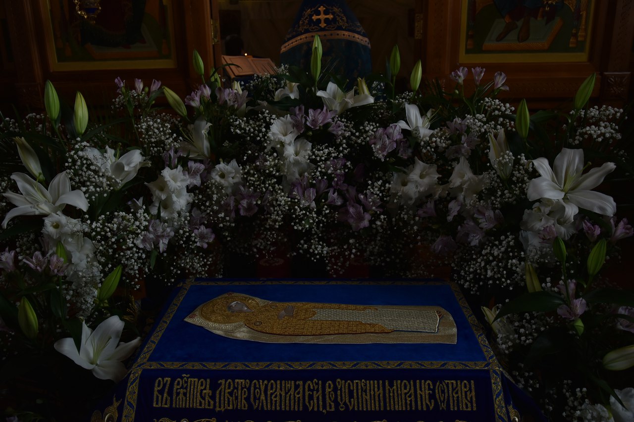 27 августа в храме святого праведного Иоанна Кронштадтского по традиции, принятой в Церкви, было совершено всенощное бдение с чином выноса из алтаря Плащаницы с изображением усопшей Божией Матери, а 28-го августа – Божественная литургия. Настоятель храма благочинный Красносельского округа протоиерей Михаил Подолей сердечно поздравил всех прихожан с праздником Успения Пресвятой Богородицы и в своей проповеди обратил внимание на смысл этого события для человека: «Событием Успения Богоматери Церковь учит нас, что физическая смерть не есть ещё уничтожение нашего бытия, а является переходом в иную жизнь, в жизнь вечную, является переходом от тления и разрушения к вечному бессмертию. Поэтому Святая Церковь в песнопениях сегодняшнего дня призывает нас радоваться и тем самым напоминает нам, что Христос Своей смертью разрушил жало смерти и для Своих верных последователей сделал ее радостной и блаженной».