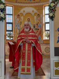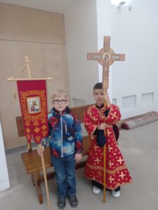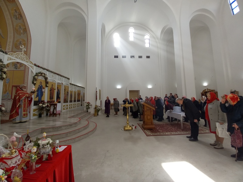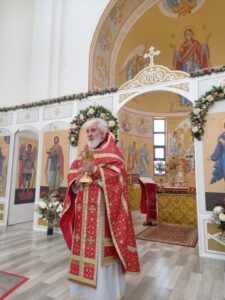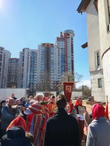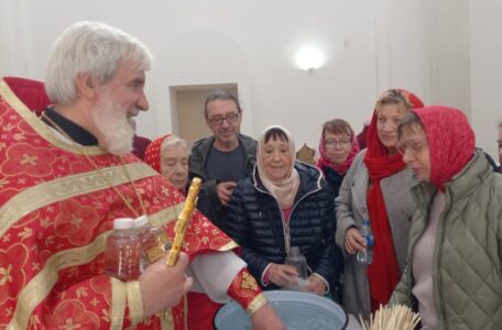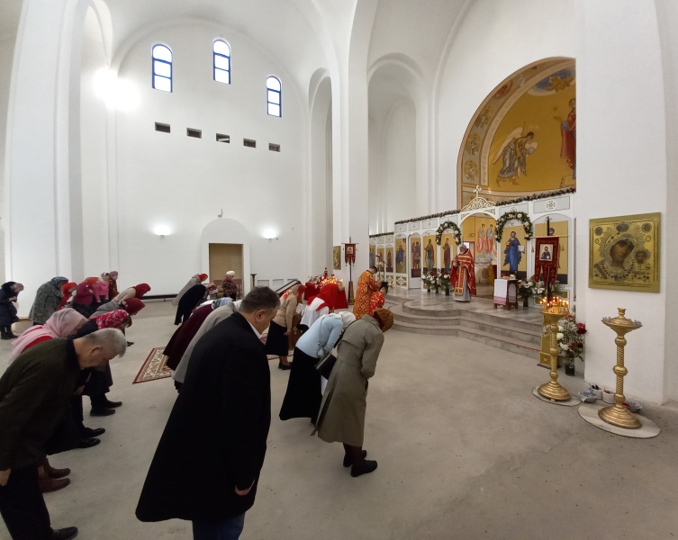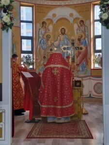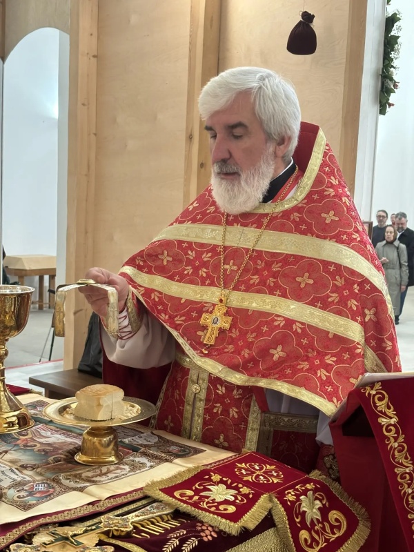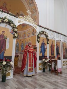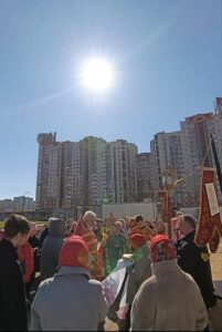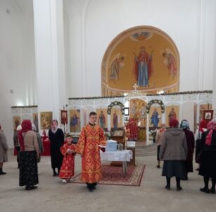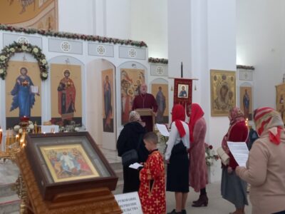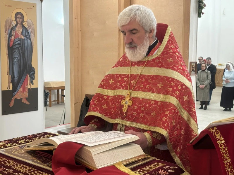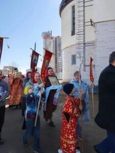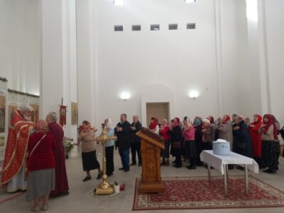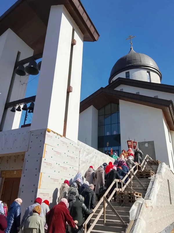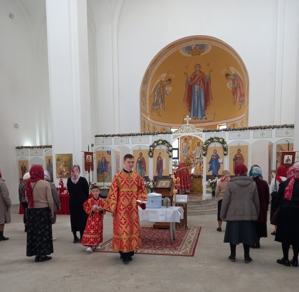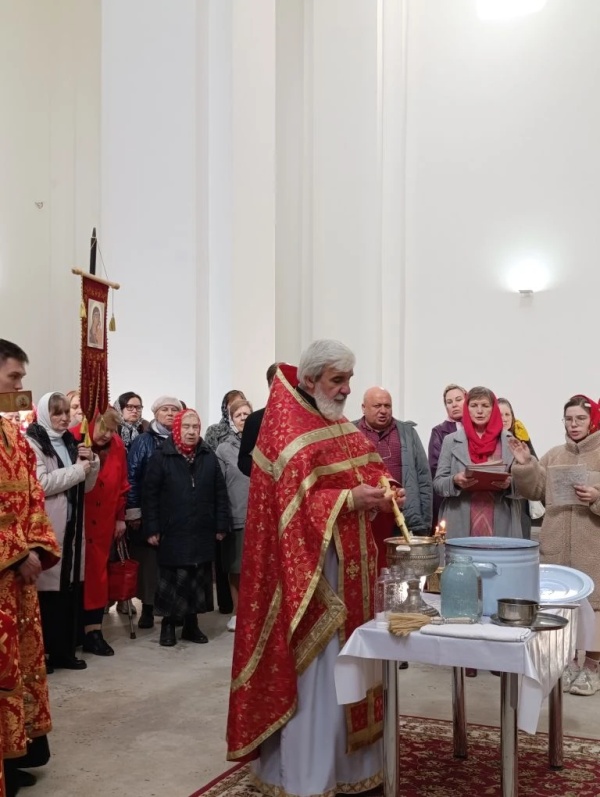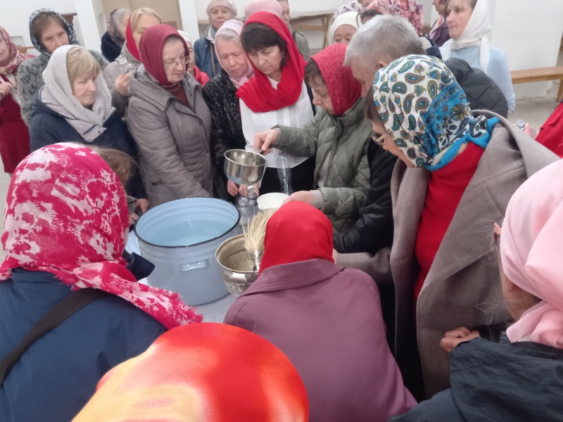 После литургии было совершено освящение воды и крестный ход. Затем отец Михаил обратился к прихожанам с проповедью.