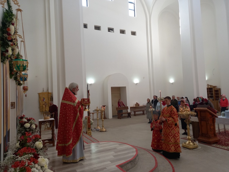 В пятницу Светлой седмицы, в день празднования иконы Божией Матери «Живоносный Источник», в храме Всемилостивого Спаса настоятель храма протоиерей Михаил Подолей совершил Божественную литургию.