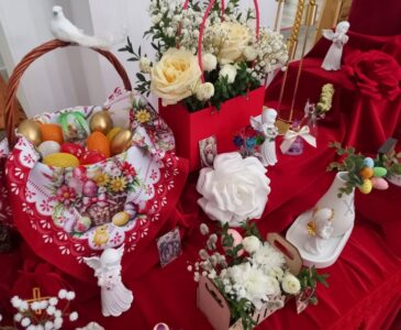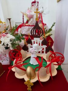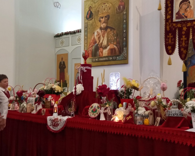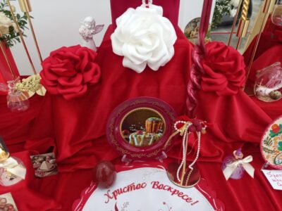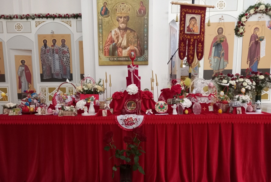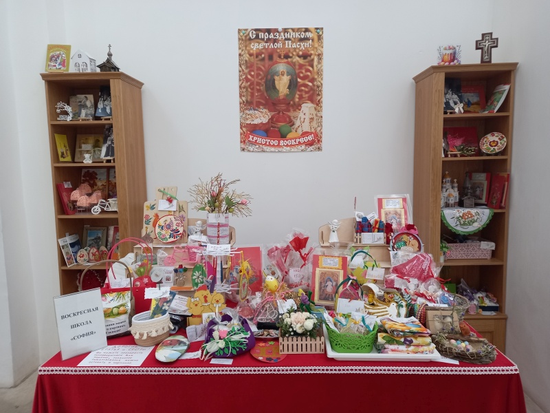 По благословению настоятеля прихода святого праведного Иоанна Кронштадтского протоиерея Михаила Подолея в храме Всемилостивого Спаса открыта Пасхальная выставка-ярмарка, на которой представлены работы воспитанников воскресной школы «София», выполненные ими вместе с родителями и учителями.