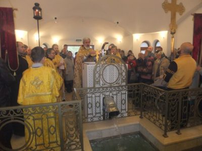 Почерпем, человецы,/ цельбы душам и телом молитвою,/ река бо всем предтечет,/ Пречистая Царица Богородица,/ источающи нам чудную воду/ и измывающи сердец черности,/ греховныя струпы очищающи,/