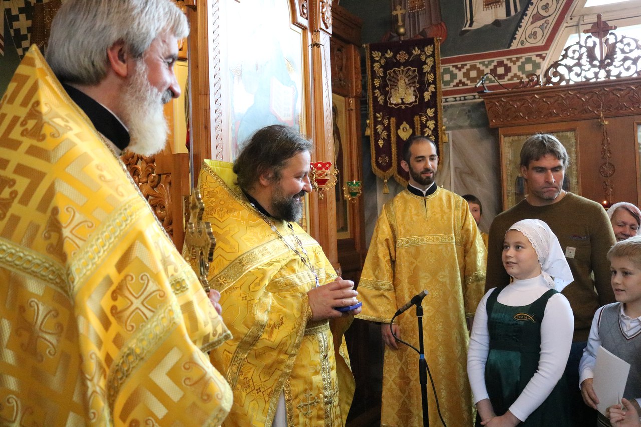 Отца Сергия, чтеца Сергия и всех именинников храма поздравили учащиеся воскресной школы и прихожане. В ответном слове отец Сергий поблагодарил всех за поздравление и молитвенную поддержку: «Ничего невозможно совершить в деле священнического служения без благодати Божией и без вашей помощи, прежде всего молитвенной. И основное, чему мы должны учить наших детей, – это молитва».