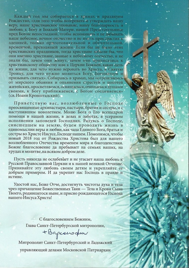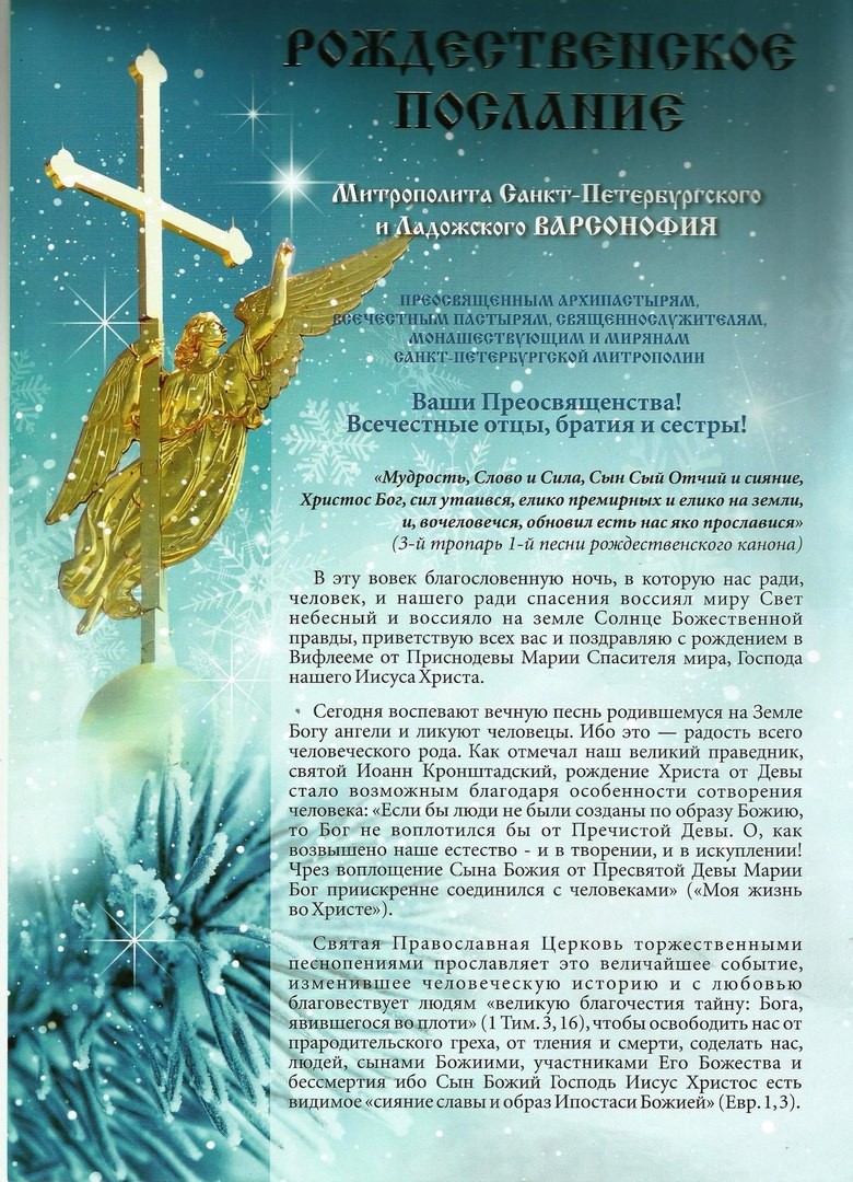Преосвященным архипастырям, всечестным пастырям, священнослужителям, монашествующим и мирянам Санкт-Петербургской митрополии
