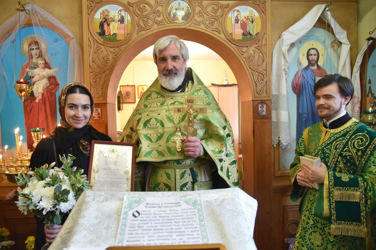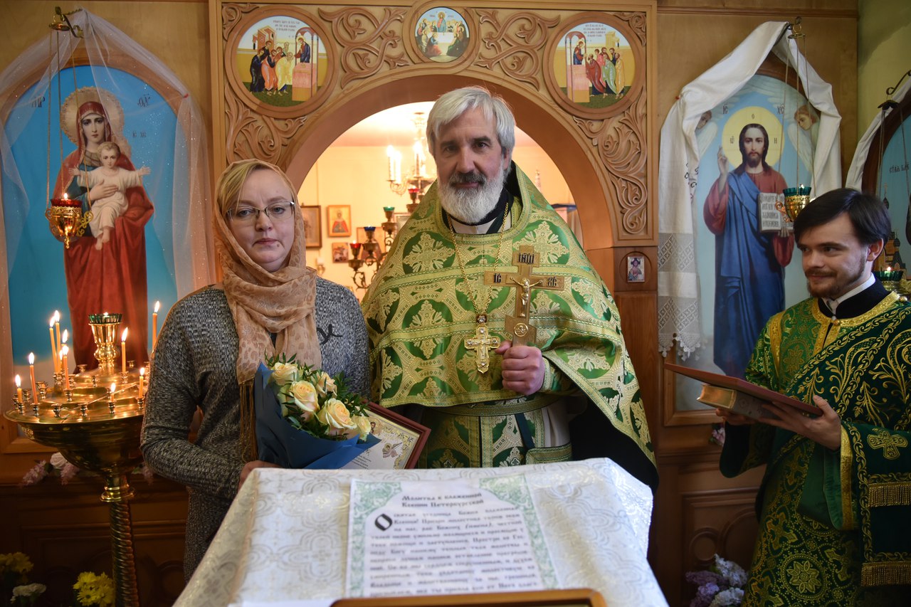 6 февраля в домовом храме святой блаженной Ксении Петербургской при СПБ ГБУ «Комплексный центр социального обслуживания населения» Красносельского района отметили престольный праздник. Была совершена Божественная литургия, которую возглавил благочинный Красносельского округа протоиерей Михаил Подолей в сослужении настоятеля храма иерея Николая Терентьева и диакона Константина Подолея. За богослужением вместе с подопечными Центра молилась его директор Степанова Юлия Валерьевна, пел любительский хор. Был совершен благодарственный молебен святой блаженной Ксении Петербургской. После богослужения благочинный поздравил всех молящихся с престольным праздником и вручил благодарственные грамоты директору учреждения Степановой Ю. В. и депутату Законодательного Собрания Санкт-Петербурга Ковалю Р. О. за внимание к нуждам прихода