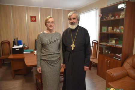 храма святой блаженной Ксении Петербургской при ГБУ Комплексном центре социального обслуживания населения Красносельского района Санкт-Петербурга. Затем состоялась беседа с сотрудниками социального дома, на которой обсуждались вопросы сотрудничества. Отец Михаил поблагодарил за доброе отношение и внимание к приходу храма, который планируется строить на выделенном земельном участке в этом же микрорайоне. В настоящее время прихожане вынуждены ютиться в маленьком домовом храме. Настоятель усердно трудится над вопросом строительства храма.