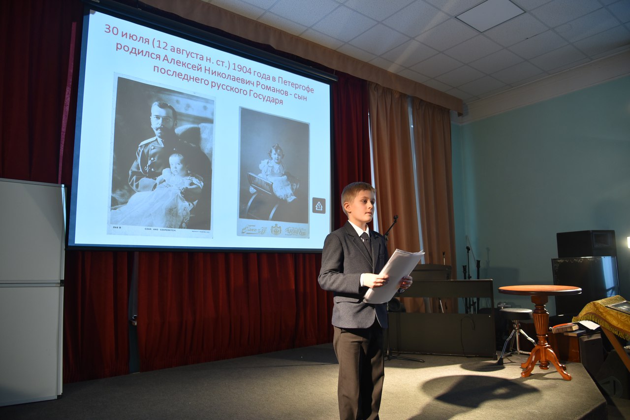 11 февраля в Красносельском благочинии состоялась конференция, посвященная памяти Царской семьи. В ней приняли участие воспитанники воскресных школ благочиния. Воскресную школу храма святого праведного Иоанна Кронштадтского представили учащиеся средней и старшей групп — Антипов Даниил (тема — Детство Императора Николая II), Лукичева Аглая (тема — Во имя Красного Креста: подвижническая деятельность Царской семьи во время I Первой Мировой войны), Макаревич Анфиса (тема — Праздник Белого цветка) и Харченко Алексей (тема — Пронзительная жизнь последнего наследника Российского престола). Руководитель работ — директор воскресной школы Галюк Ирина Васильевна. Выступающих ребят пришли поддержать их родители, преподаватель школы диакон Константин Подолей и другие учащиеся нашей воскресной школы. Лучшей на этой конференции жюри признало работу Антипова Даниила. Поздравляем! Всех участников сердечно благодарим за выступления! Желаем всем Божией помощи!