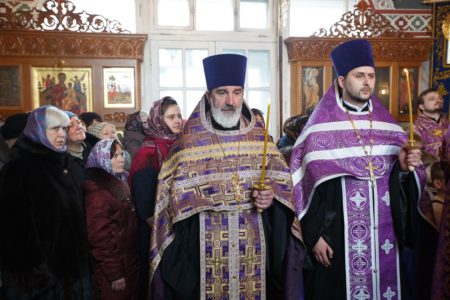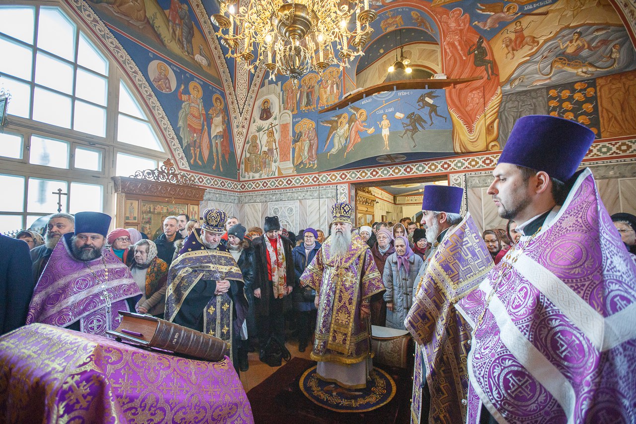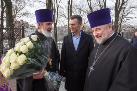 В связи с 50-летием со дня рождения настоятель был награжден патриаршей грамотой и медалью апостола Петра первой степени. Он поблагодарил правящего архиерея за приезд во время Великого поста: «Это молитвенная поддержка», — сказал он и преподнес постный торт с изображением храма.
