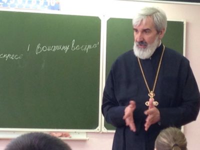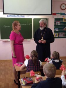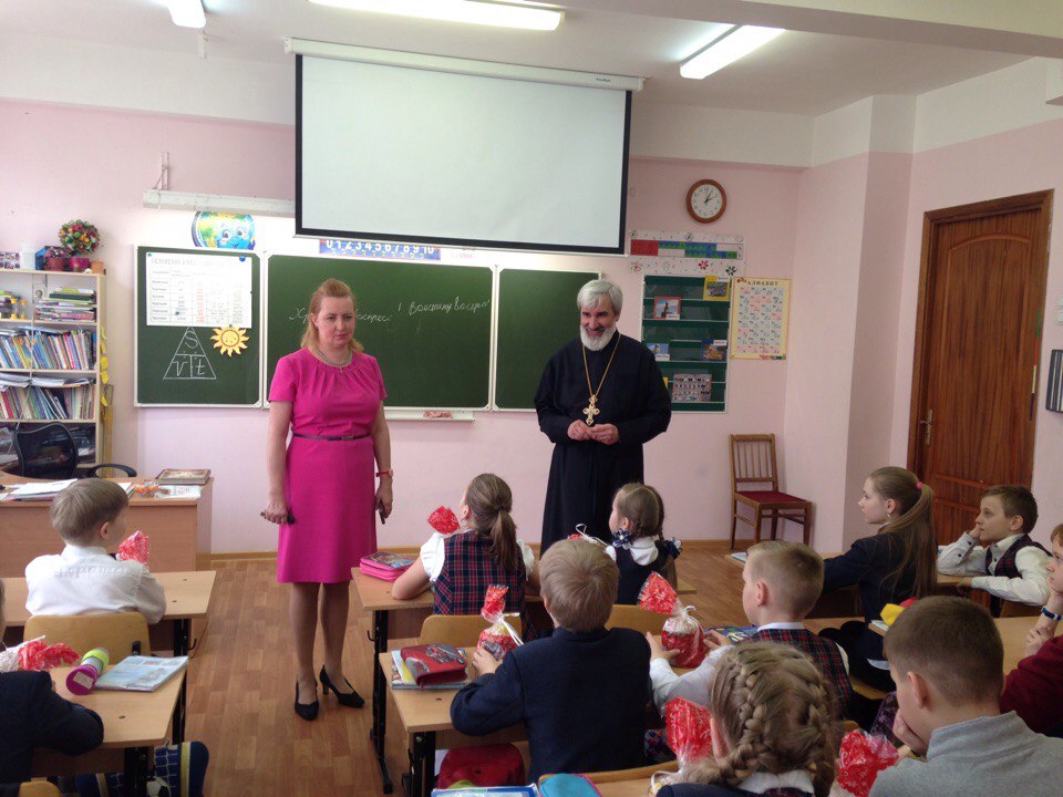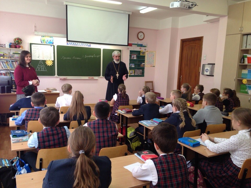 В четверг Светлой седмицы настоятель храма святого праведного Иоанна Кронштадтского протоиерей Михаил Подолей с помощником Ириной Васильевной Галюк по приглашению директора ГБОУ Лицея № 387 им. Н. В. Белоусова Инны Юрьевны Васьковой провели урок в 4-м классе лицея, посвященный празднику Святой Пасхи. Дети с большим вниманием участвовали в беседе. В конце урока им были подарены пасхальные куличи. С радостным настроением ребята поблагодарили отца Михаила за интересный рассказ и подарки. На уроке присутствовали: директор лицея, заместитель директора по воспитательной работе Надежда Васильевна Фильченкова и классный руководитель класса Марина Игоревна Амелина. Обсуждаемая тема по-настоящему затронула и педагогов, и детей, и чувствовалось, что такие встречи проводятся с большой пользой для всех участников.