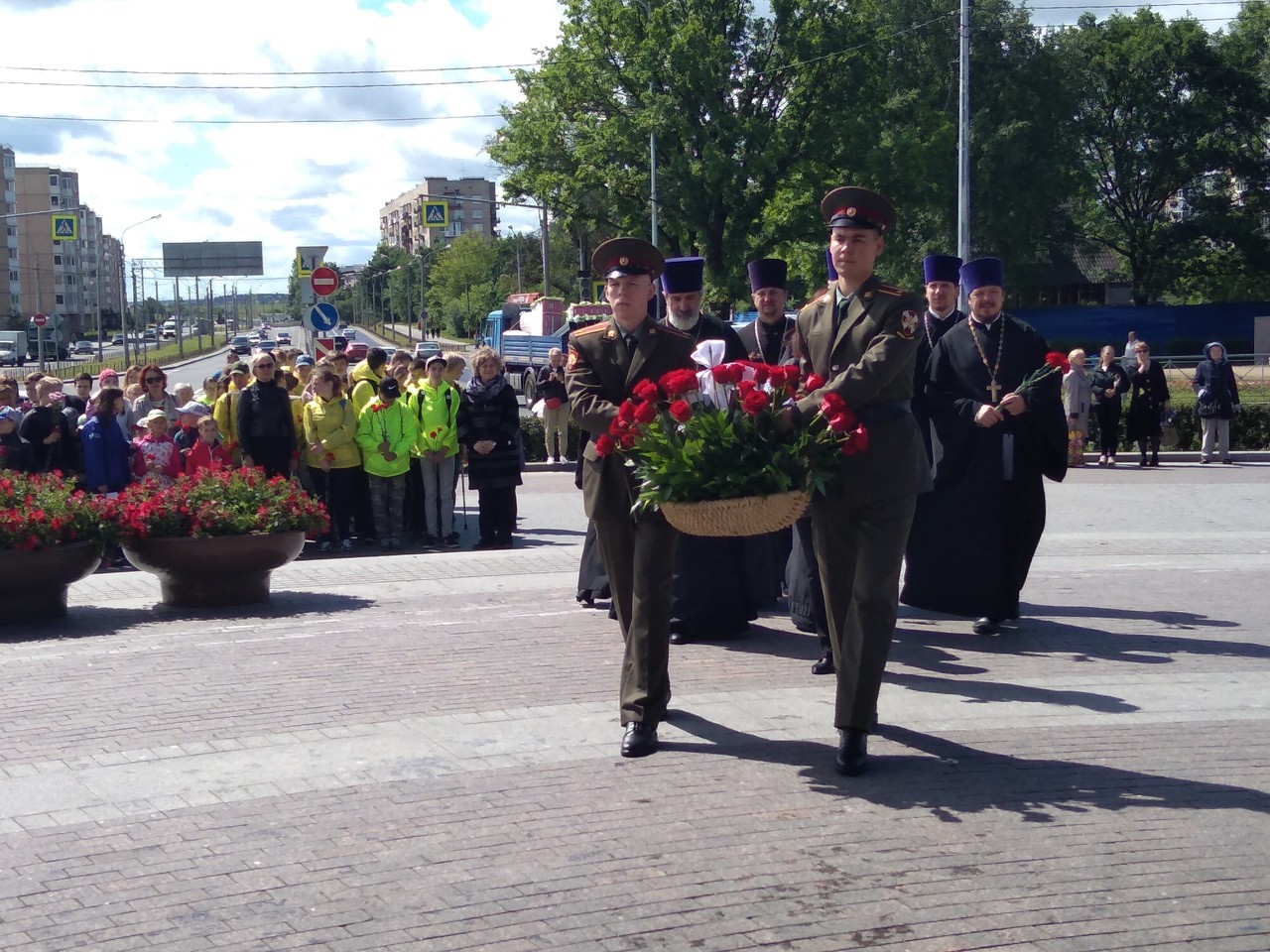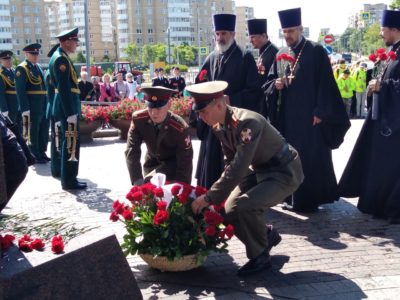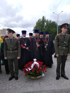 22 июня духовенство Красносельского благочиния во главе с благочинным протоиереем Михаилом Подолеем приняло участие в торжественно-траурной церемонии возложения цветов у Триумфальной Арки Победы в Красном Селе.