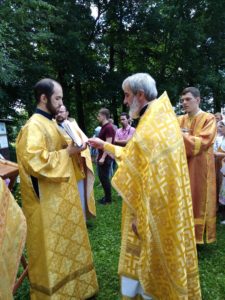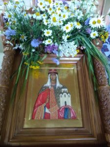 После богослужения отец Михаил поздравил всех собравшихся с праздником, всех именинниц – с Днем Ангела: «Поздравляю всех вас с этим великим праздником! В этом году милостью Божией будем торжественно отмечать 1030-летие Крещения Руси 28 июля, в день святого равноапостольного великого князя Владимира. Это официальная дата. Но мы с вами знаем на примере святой великой княгини Ольги, что задолго до этого времени на Руси прославлялось имя Христово. Как утренняя заря перед восхождением солнца, святая Ольга воссияла на нашей земле. Ее служение Отечеству, своему народу совершалось в тех условиях, когда еще на нашей земле царила языческая вера. Многие могли ее убеждать в том, что у них и так все хорошо, имеется много мест для поклонения разным богам, свои условия, уже сложились свои устои, привычки, и ничего больше не нужно. Ее могли подозревать, не просто сомневаться, а враждовать. Но Господь смотрит на сердце человека и дает ему сделать то, что, казалось бы, в обычных условиях сделать невозможно. Он посылает Свою помощь. Святая Ольга подготовила своим служением всеобщее крещение русского народа».