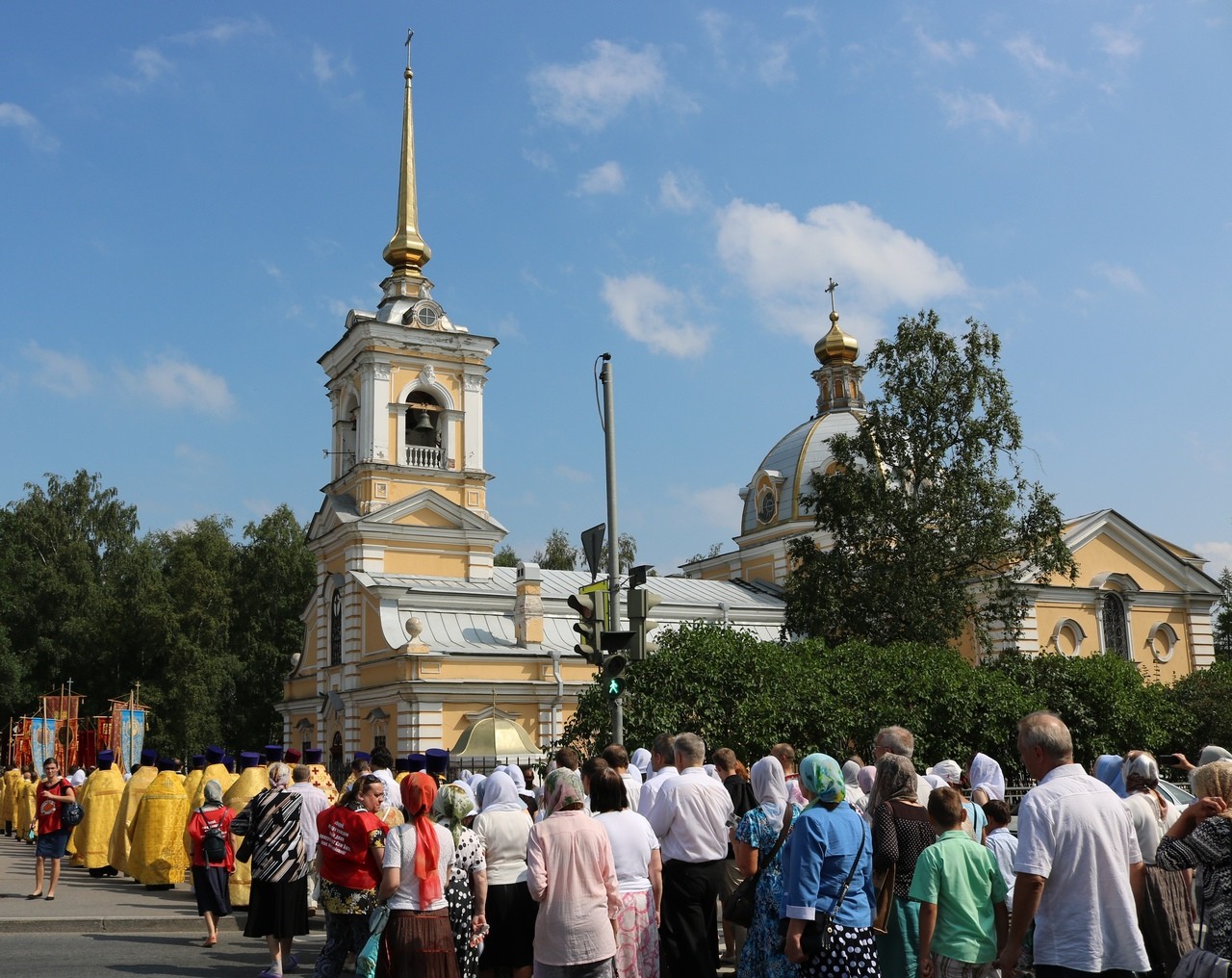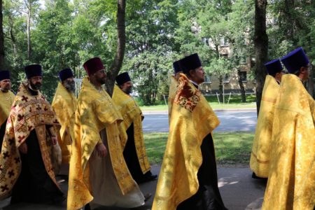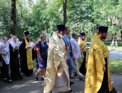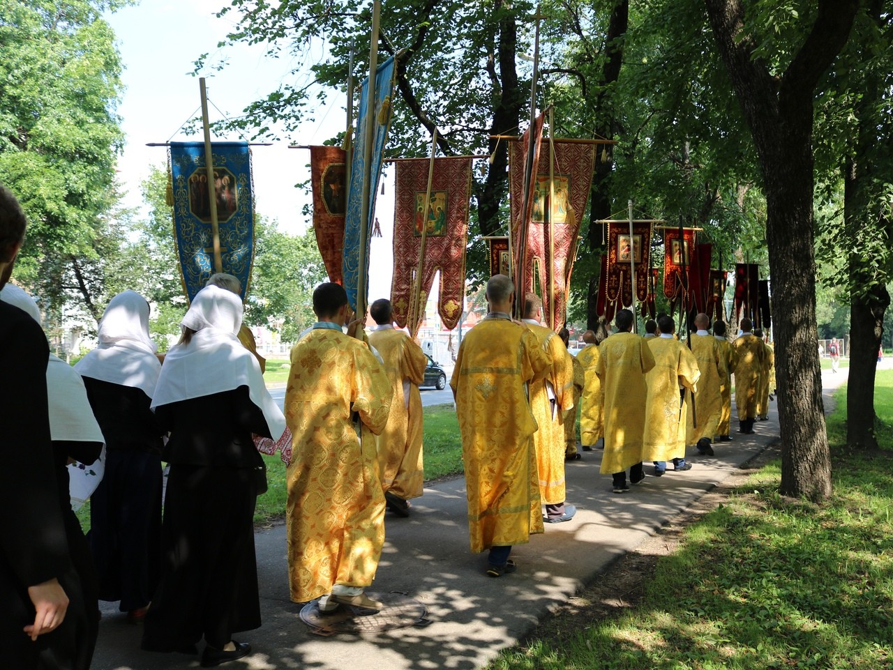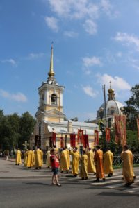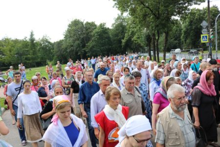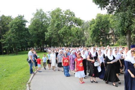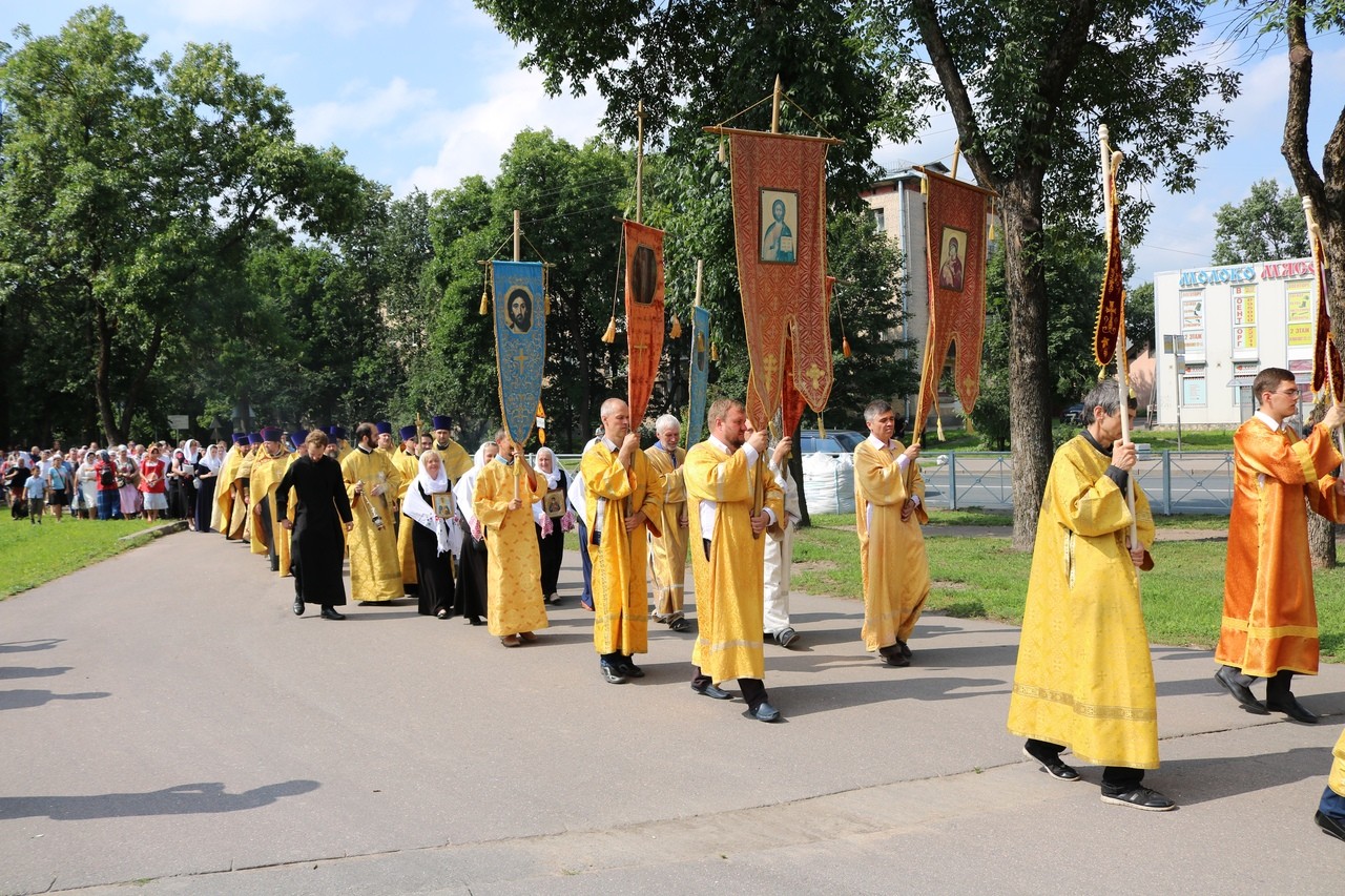 По окончании Литургии состоялся крестный ход от храма св. блг. вел. кн. Александра Невского к Свято-Троицкому храму. Перед началом крестного хода благочинный Красносельского округа протоиерей Михаил Подолей обратился ко всем собравшимся с напутственным словом, отметив, что: «сегодня мы празднуем 1030-летие Крещения Руси и прославляем святого равноапостольного великого князя Владимира, крестителя Руси. Мы собрались здесь, чтобы засвидетельствовать веру православную в XXI веке. Прошло уже 1030 лет с того времени, как крестился сам князь Владимир, крестил свой народ. И вера православная жила все это время на нашей земле. Что же сегодня нам необходимо? Напутствуя нас, священнослужителей, владыка Варсонофий сказал, что нужно провести этот праздник, этот день так, чтобы как можно больше людей узнало о том, что Русь крестилась, что наш народ принял Святое Крещение, что он приобрел через принятие святого крещения благодать Святого Духа, что на нашей земле стало прославляться имя Христово со Отцем и Духом Святым, что люди, которые искали и ищут правды Божией, никогда не будут оставлены Богом на земле, но всегда будут чувствовать Его помощь и поддержку. Мы с вами собрались сегодня, чтобы отпраздновать этот значительный день в истории нашего народа, каждого верующего христианина. Сейчас мы совершим крестный ход. Пусть наше молитвенное шествие будет свидетельством нашей православной веры на нашей земле. Оно будет нашим, пусть небольшим, вкладом в распространение евангельской проповеди и свидетельством евангельской истины, потому что только жизнь по Евангелию может продолжаться на земле. Все, что отвращается от Бога, все, что отымается от этого живого источника, нисходит в небытие. Мы должны быть благодарны Богу за Его неизреченную милость к нам, за то, что мы становимся непосредственными участниками таких радостных событий и можем внести пусть незначительную лепту в благое и доброе дело духовного просвещения и проповеди Евангелия на нашей земле, продолжая ту проповедь, которую начал святой равноапостольный великий князь Владимир и его сподвижники, проповедь, которую несли все поколения наших благочестивых соотечественников».