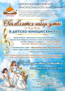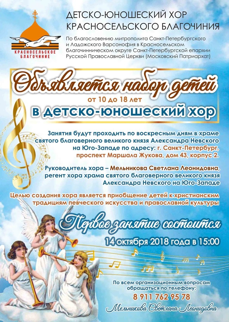 28 Сен 2018 Главная » Красносельское благочиние » ОБЪЯВЛЯЕТСЯ НАБОР ДЕТЕЙ В ДЕТСКО-ЮНОШЕСКИЙ ХОР КРАСНОСЕЛЬСКОГО БЛАГОЧИНИЯОБЪЯВЛЯЕТСЯ НАБОР ДЕТЕЙ В ДЕТСКО-ЮНОШЕСКИЙ ХОР КРАСНОСЕЛЬСКОГО БЛАГОЧИНИЯ Вконтакте