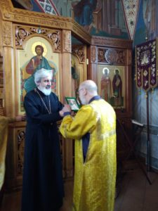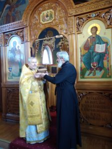 Настоятель храма протоиерей Михаил Подолей с прихожанами поздравили клирика храма иерея Валерия Волкова с днем священнической хиротонии и чтеца Романа Семеновича Эйвадиса с Днем Ангела. В благословение Божие отец Михаил преподнес иконы святого праведного Иоанна Кронштадтского.
