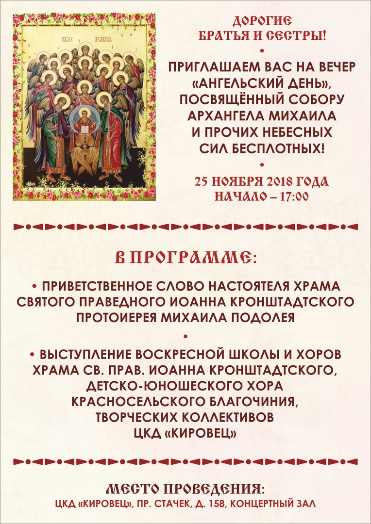 ПОСВЯЩЕННЫЙ СОБОРУ АРХАНГЕЛА МИХАИЛА И ПРОЧИХ НЕБЕСНЫХ СИЛ БЕСПЛОТНЫХ!