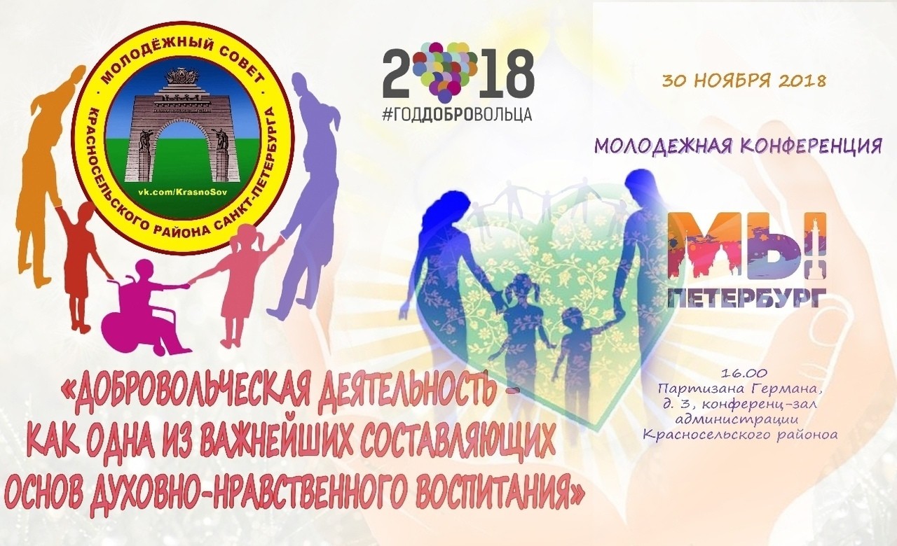 30 ноября в Красносельском районе была организована молодежная конференция на тему: «Добровольческая деятельность как одна из важнейших составляющих основ духовно-нравственного воспитания». В качестве почетных гостей и экспертов были приглашены — начальник Отдела культуры, молодежной политики и взаимодействия с общественными организациями администрации Красносельского района Ладыго Е.О., благочинный Красносельского округа протоиерей Михаил Подолей, депутат Законодательного Собрания Санкт-Петербурга Коваль О. Р., которые обратились с приветственным словом к присутствующим. Были заслушаны доклады: Зимницкого Г. И., разработчика приложения «БлагоДаря», Принцева Н. В. на тему «Молодежь и медиа: оптимальные траектории для взаимодействия», Боброва Д. А., руководителя молодежных проектов Центра подготовки церковных специалистов при Санкт-Петербургской Духовной Академии на тему «Что такое милосердие в православии».